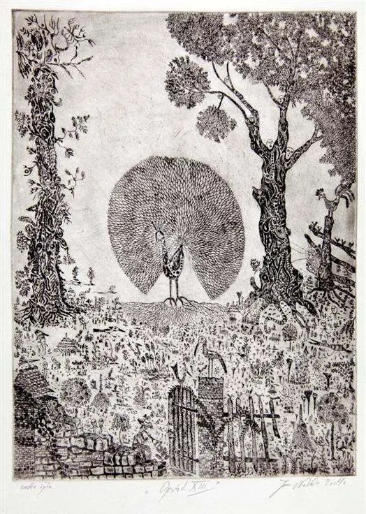 sucha igła / papier, wym. 28,7 x 21,2 cm, sygn. ołówkiem: l.d. sucha igła 15/20, ś.d. "Ogród XIII", p.d. Jan Nowak 2004
