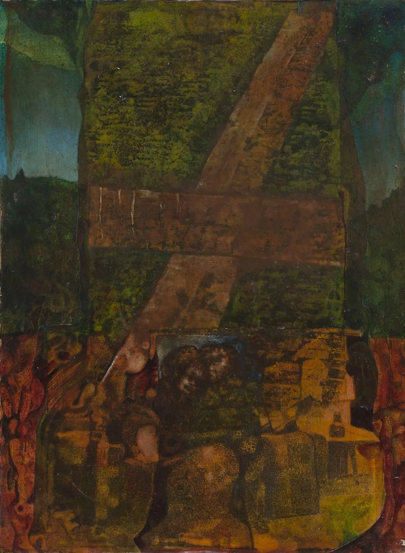 technika własna, sklejka, 39 x 30 cm, sygn. i opis autorski na odwrocie.