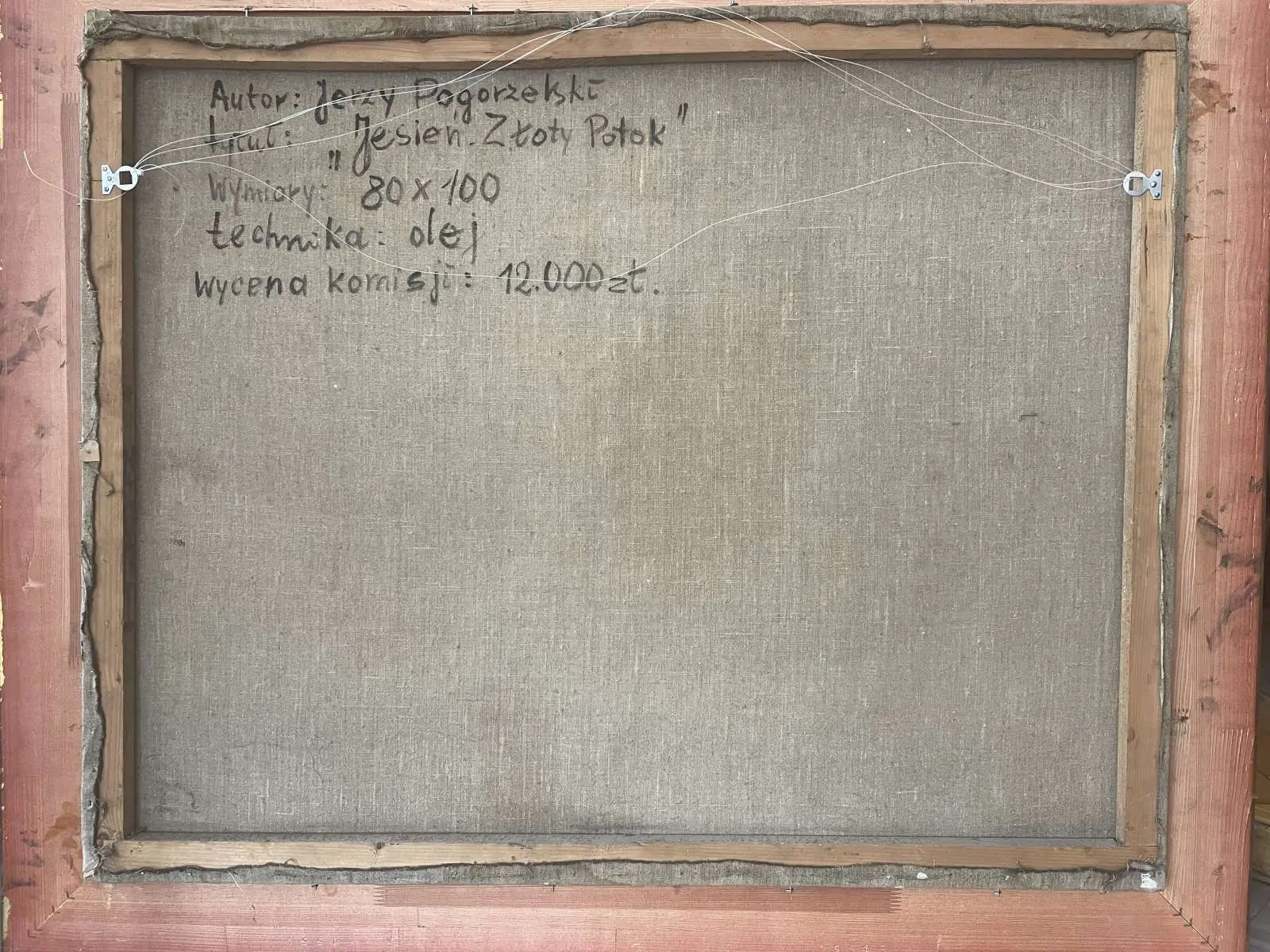 olej, płótno, wym. 80 x 100 cm, sygn. p.d. 'Pogorzelski'. Na odwrocie napisy czarną farbą.