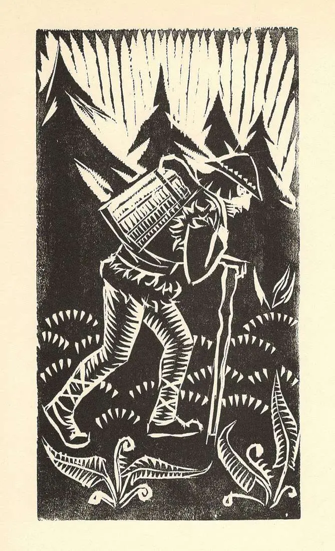 Ilustracja do poematu „Jałowcarz” Emila Zegadłowicza, „Czartak. Zbiór poetów w Beskidzie. Poezje i proza”, (t.3), Kraków, 1928.