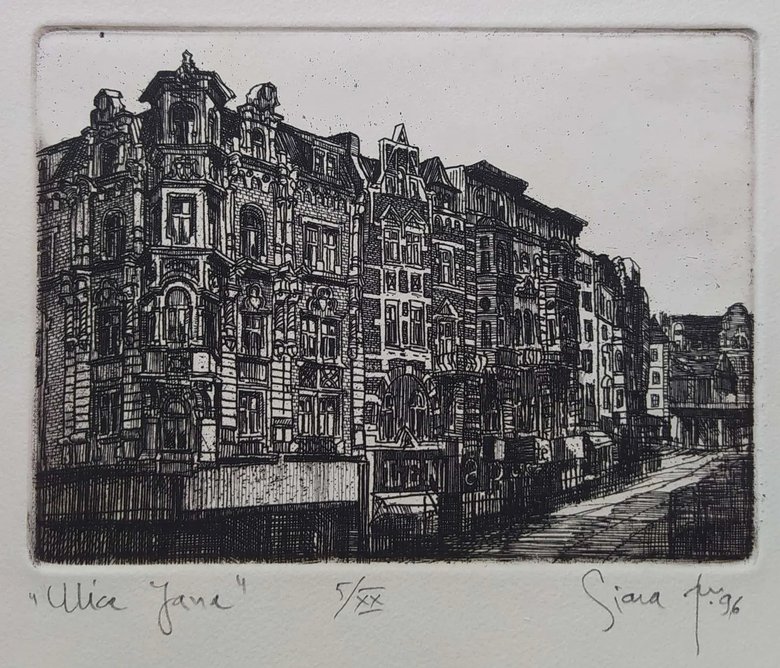 Akwaforta, papier, wym. 12 x 16 cm, sygn. p.d., dat. 19(96), nr. 5/XX