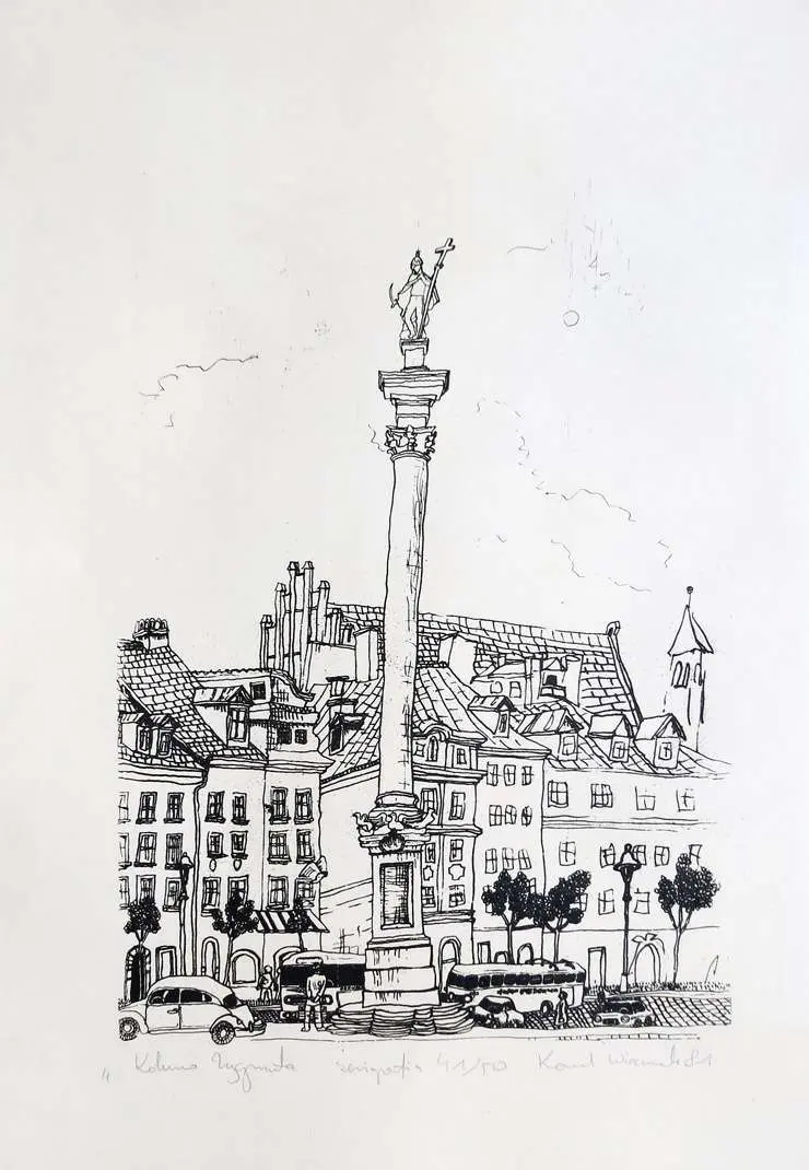 serigrafia, 41/50, 47 x 35 cm, wym. arkusza: 70 x 50,5 cm, sygn. oł. p.d.: Karol Wieczorek 81; oł. ld.: „Kolumna Zygmunta” Serigrafia 41/50