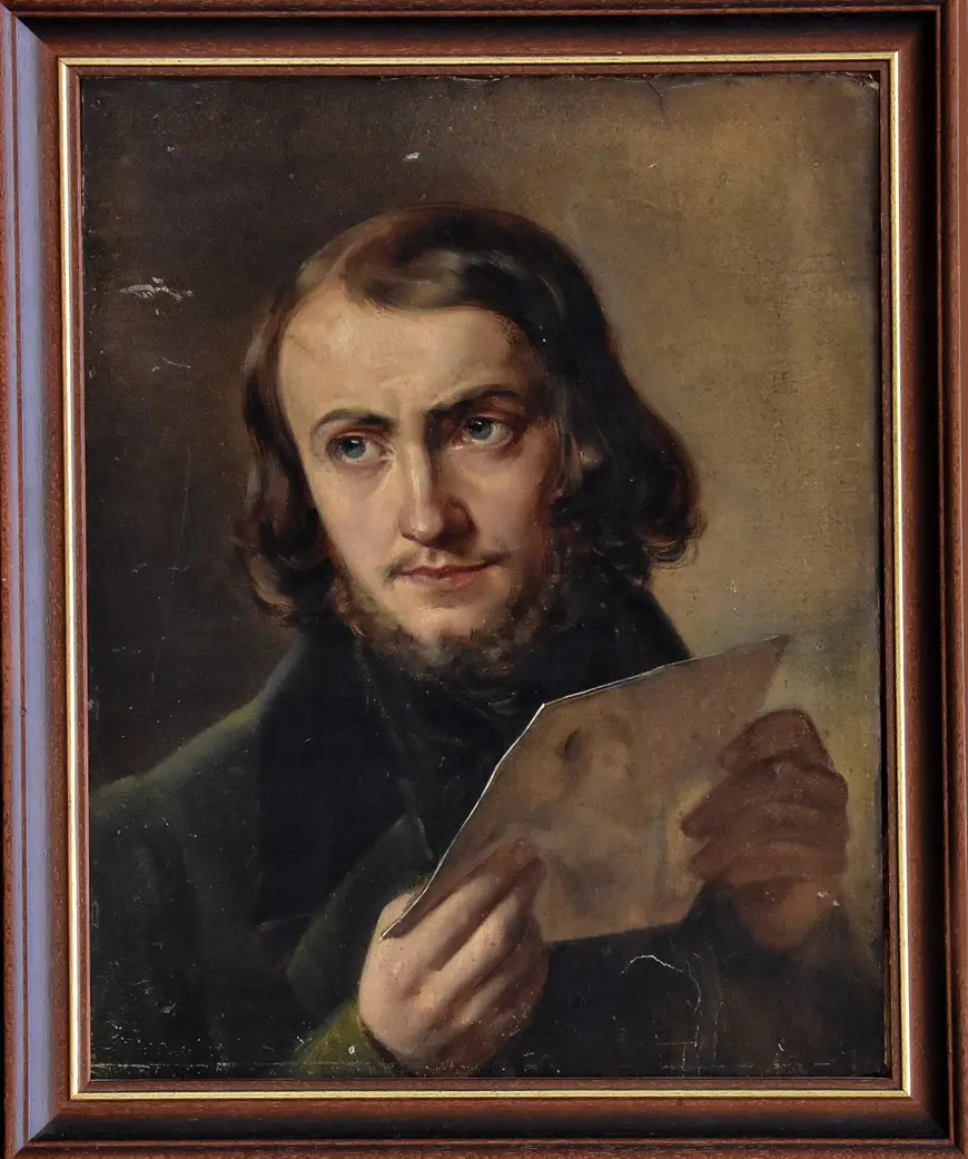 Pozycja: "Portret młodego mężczyzny z rysunkiem dziewczyny", ok. poł. XIX w