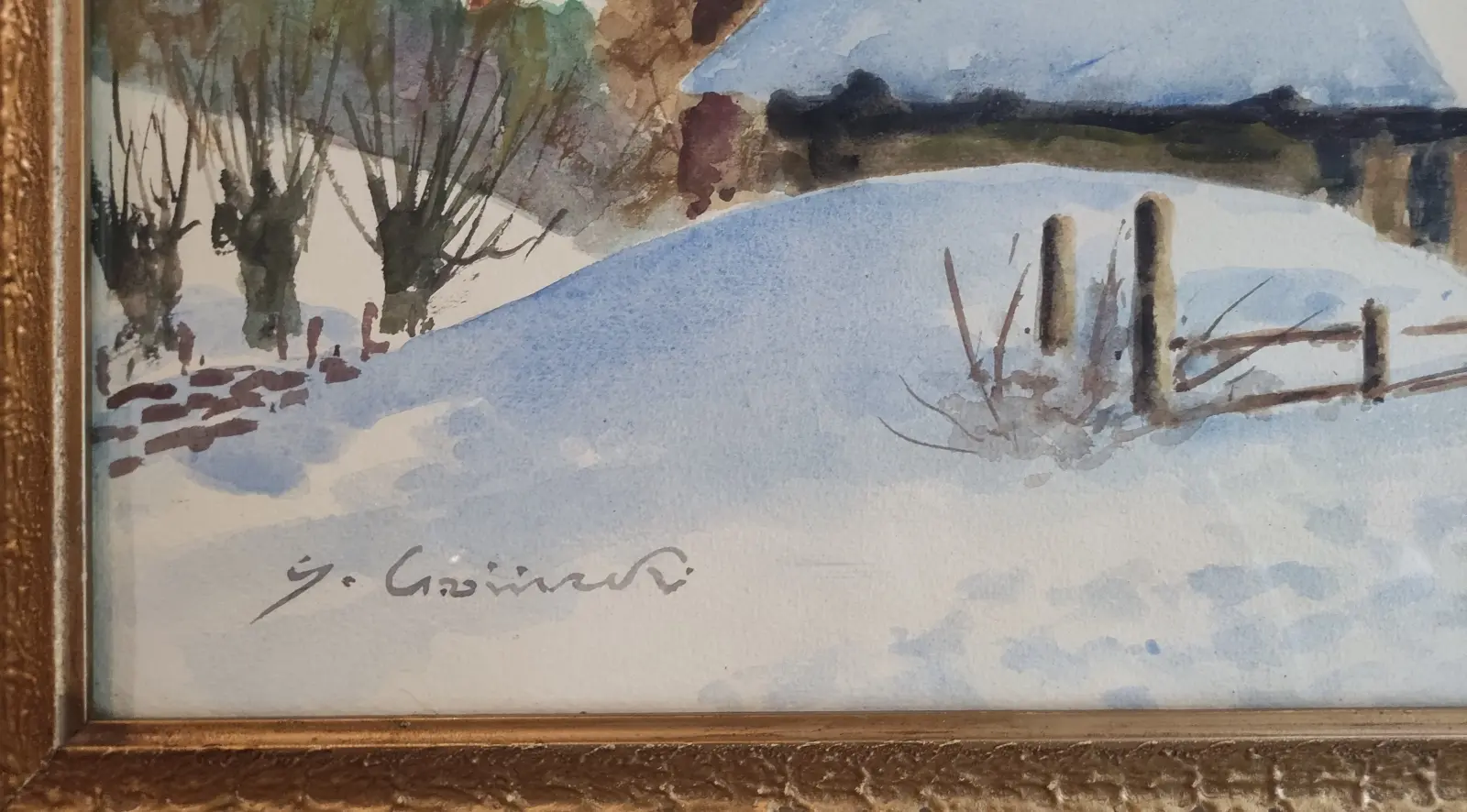 akwarela / papier, wym. 33,50 cm x 47,50 cm (w świetle oprawy), sygn. l.d. S. Gibiński; oprawa drewniana złocona, szklenie