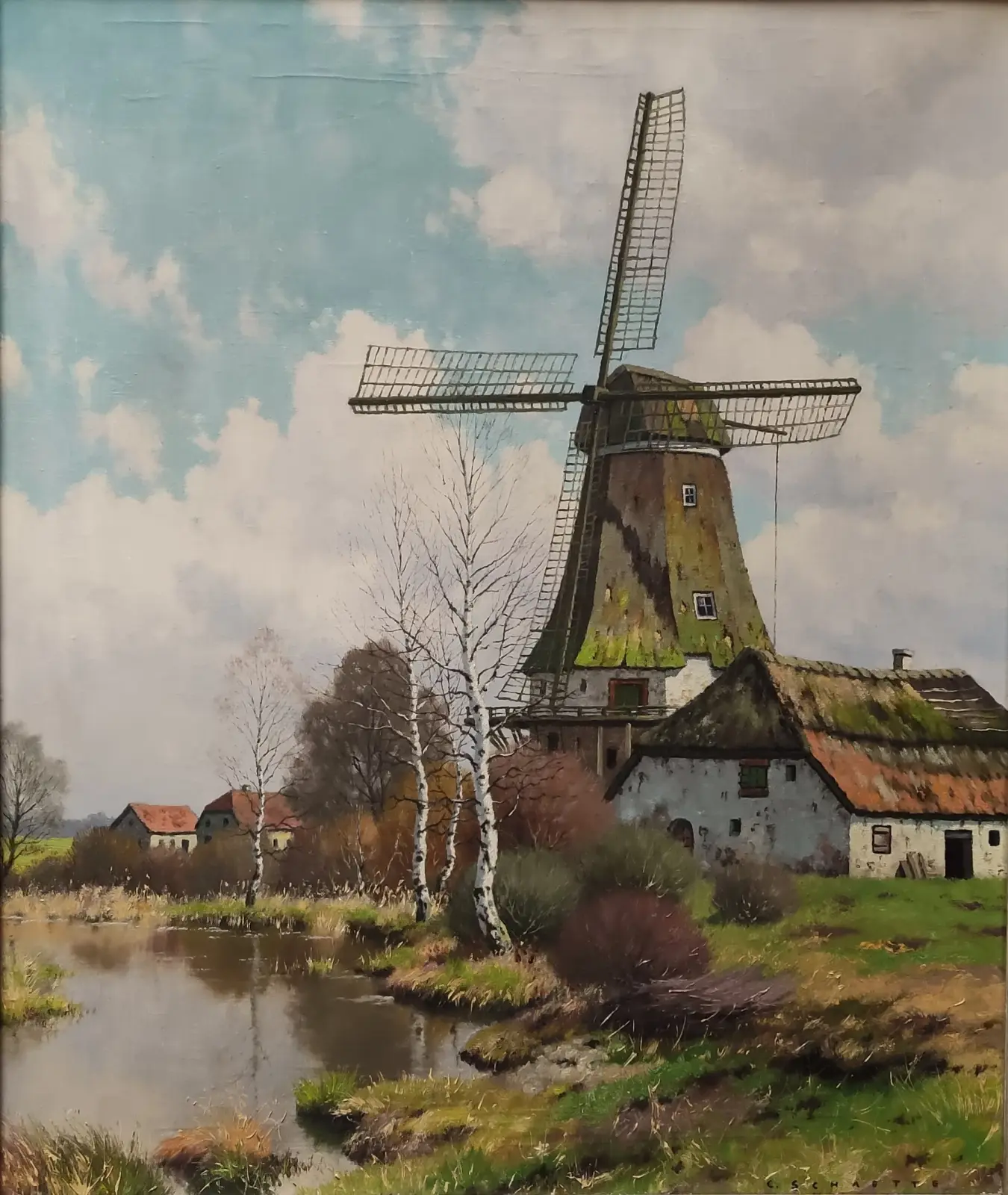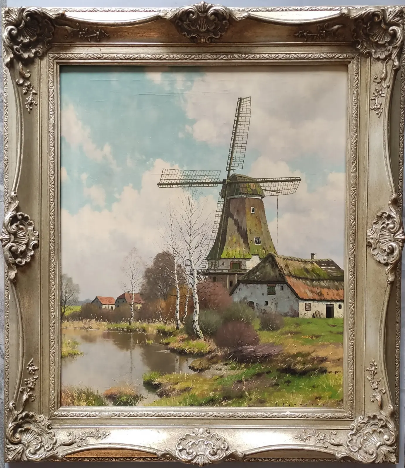 olej / płótno, wym. 58,50 cm x 48,50 cm (w świetle oprawy), sygn. p.d. C. Schaette; oprawa drewniana srebrzona, aplikacje gipsowe