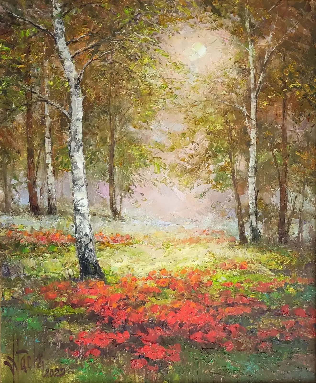 olej / płótno, wym. 46 cm x 38 cm, sygn. l.d. J. Łącki 2022, oprawa autorska drewniana, malowana