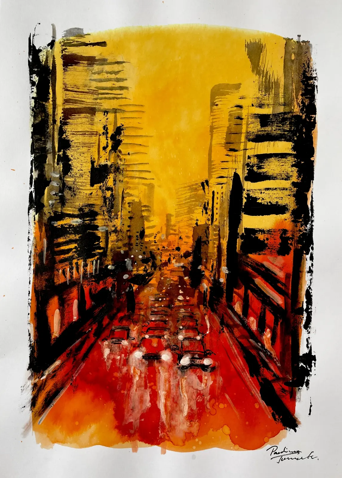farby wodne/tusz/papier, wym. 39 cm x 29 cm (w świetle oprawy), sygn. p.d. Paulina Taranek; oprawa listwowa, passe-partout, szklenie