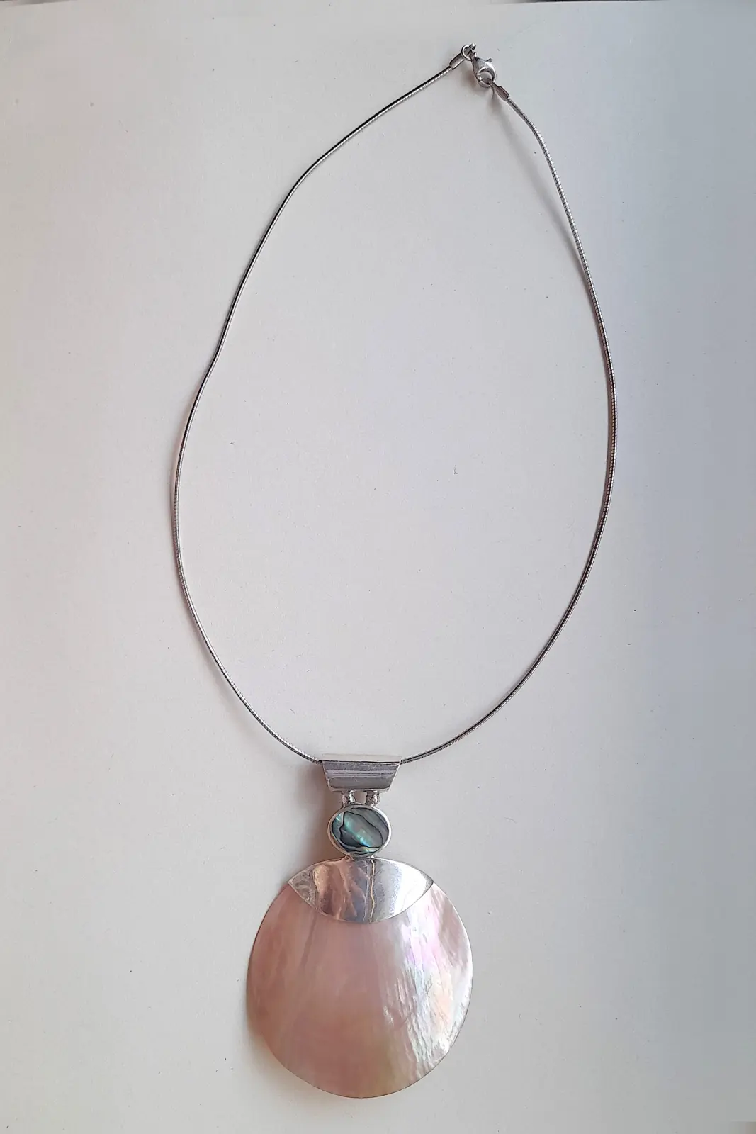 Srebro pr. 925 , wisior z masy perłowej o śr. 5 cm. , waga 13,4 g.