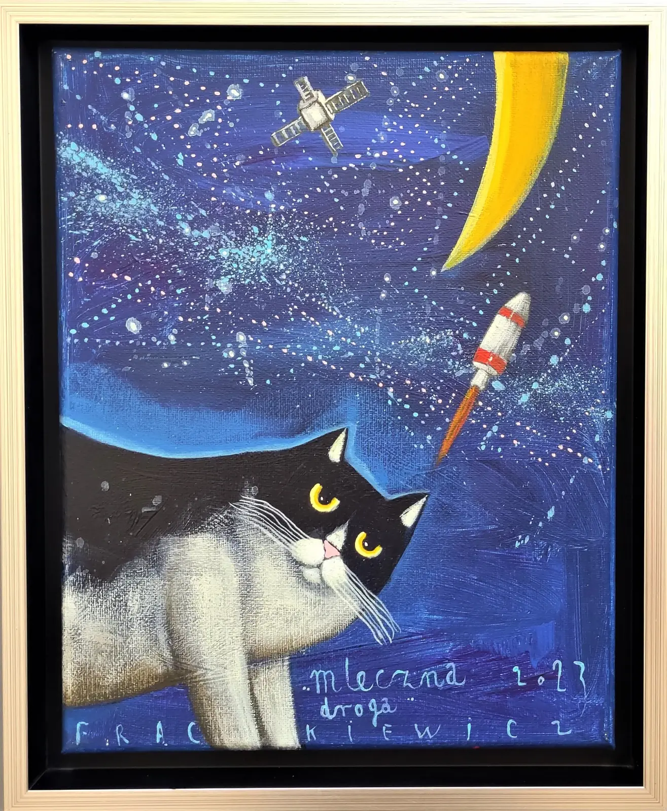 akryl/płótno, wym. 30 cm x 24 cm, sygn. d.: 'Frąckiewicz'; opisany autorsko na odwrociu: 'Jacek/Frąckiewicz/"Droga mleczna"/30x24, akryl/2023/10/IV 2023';