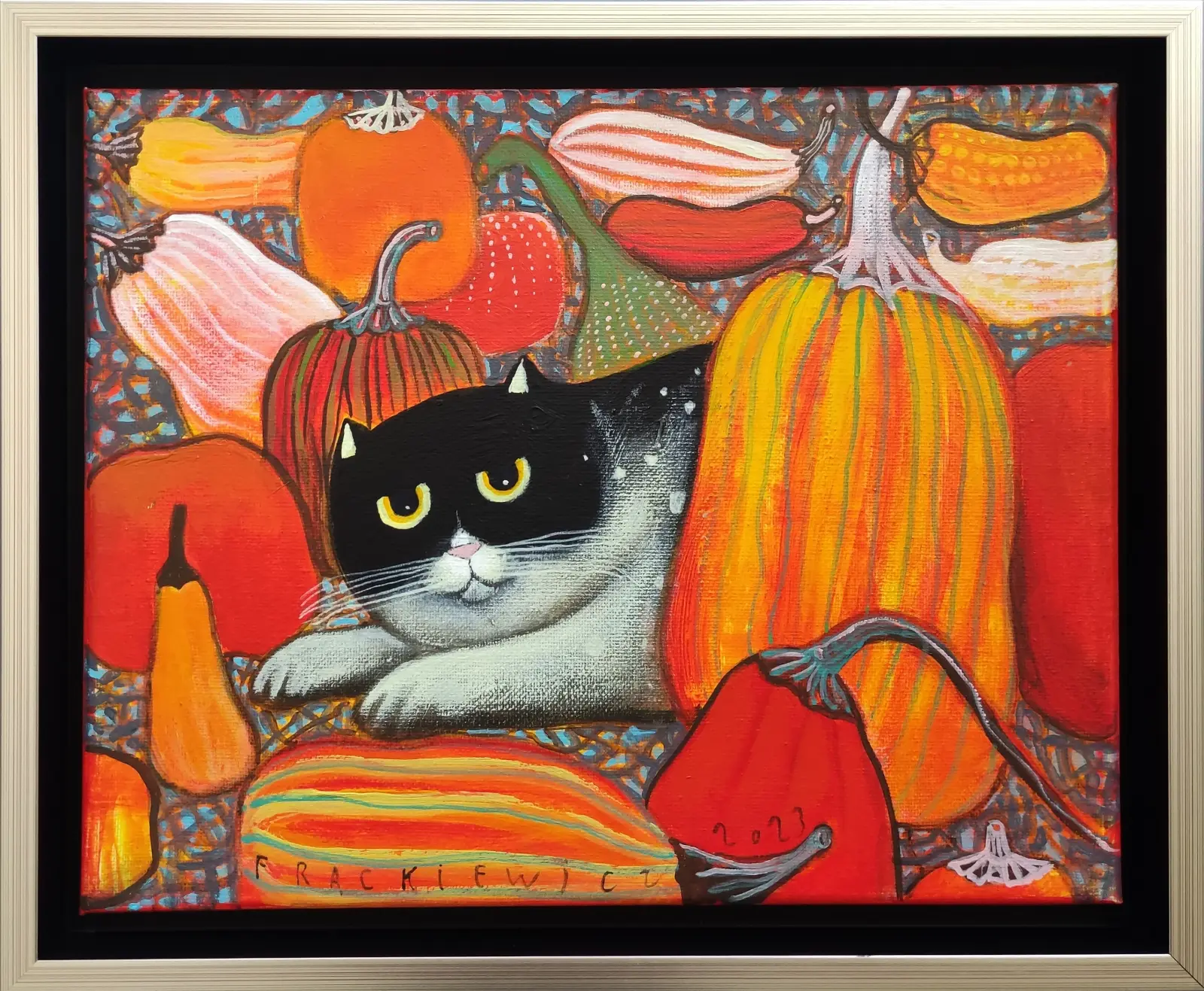 akryl/płótno, wym. 30 cm x 24 cm, sygn. d.: 'Frąckiewicz 2023'; opisany autorsko na odwrocie: 'Jacek/Frąckiewicz/"Dyniowe pole 2 IV/2023/24x30, akryl/8/IV 2023';