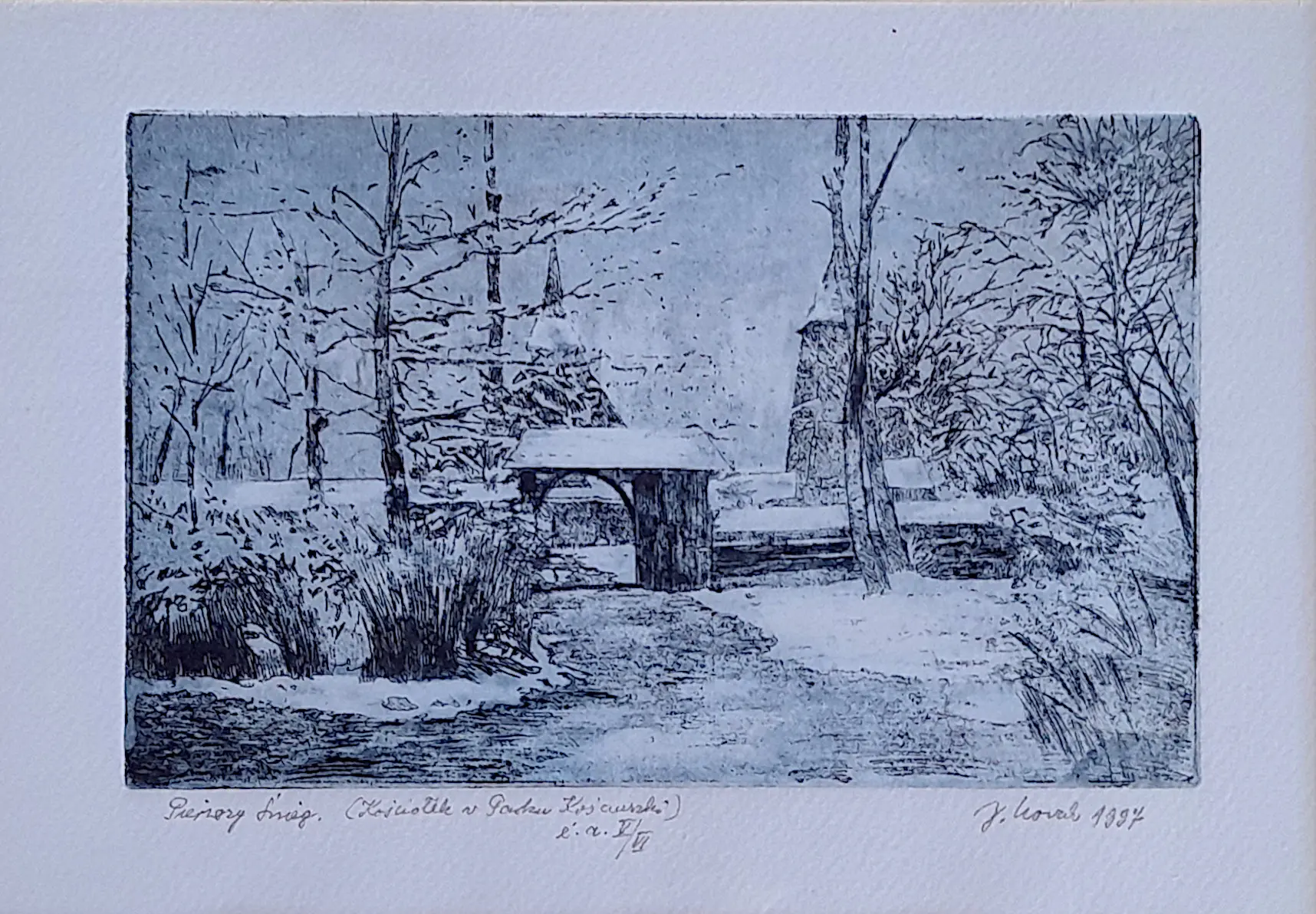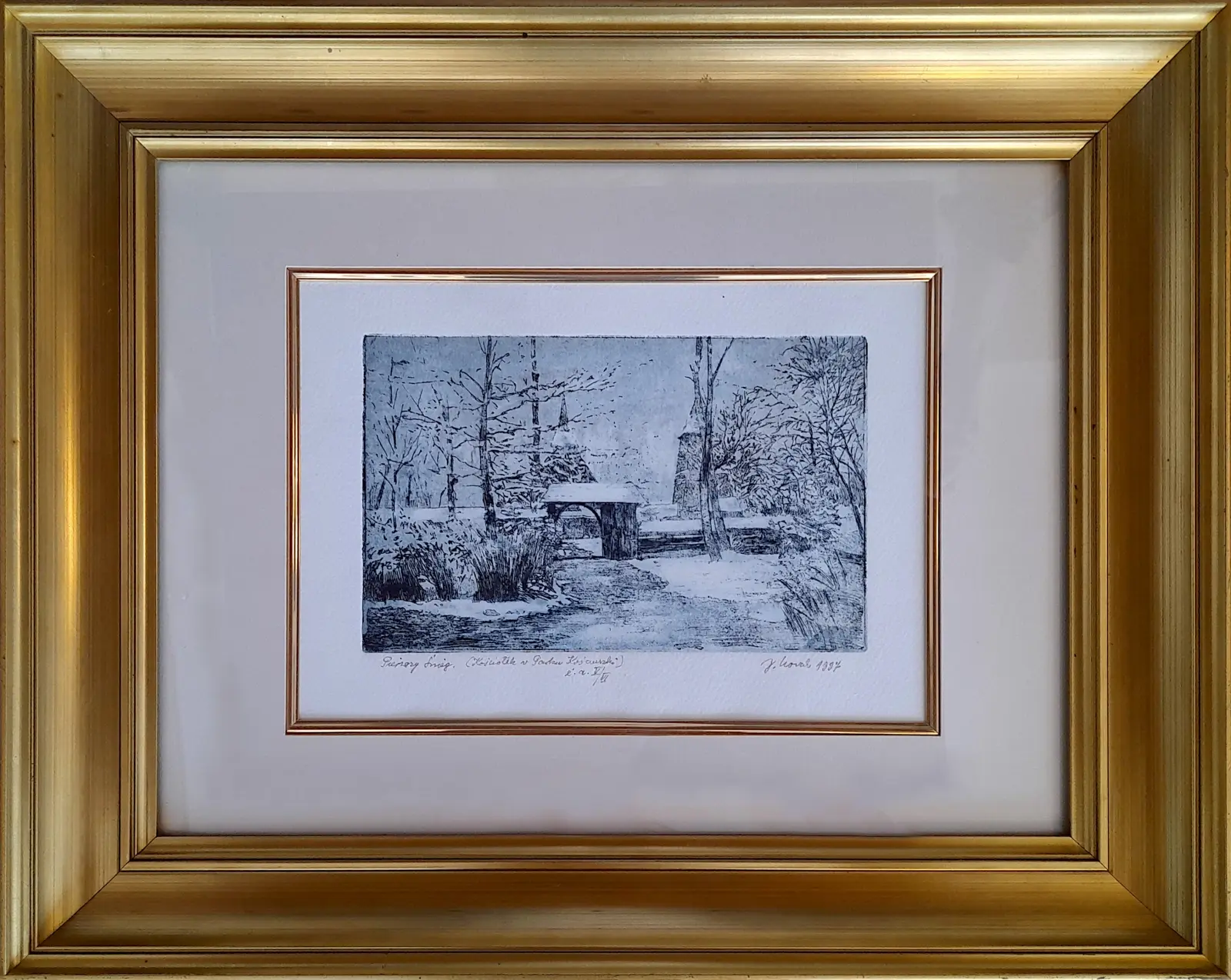 Pierwszy śnieg. Kościółek w Parku Kościuszki