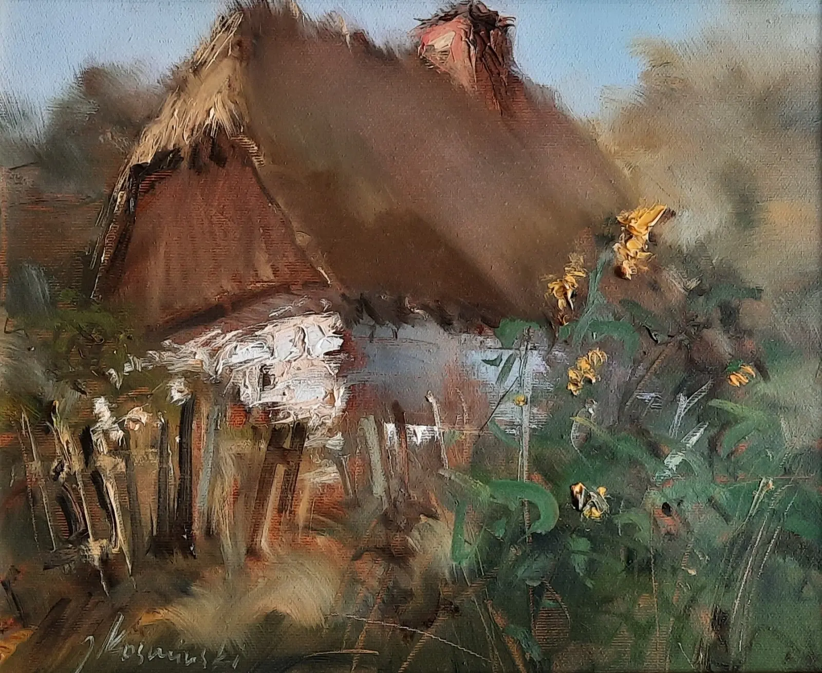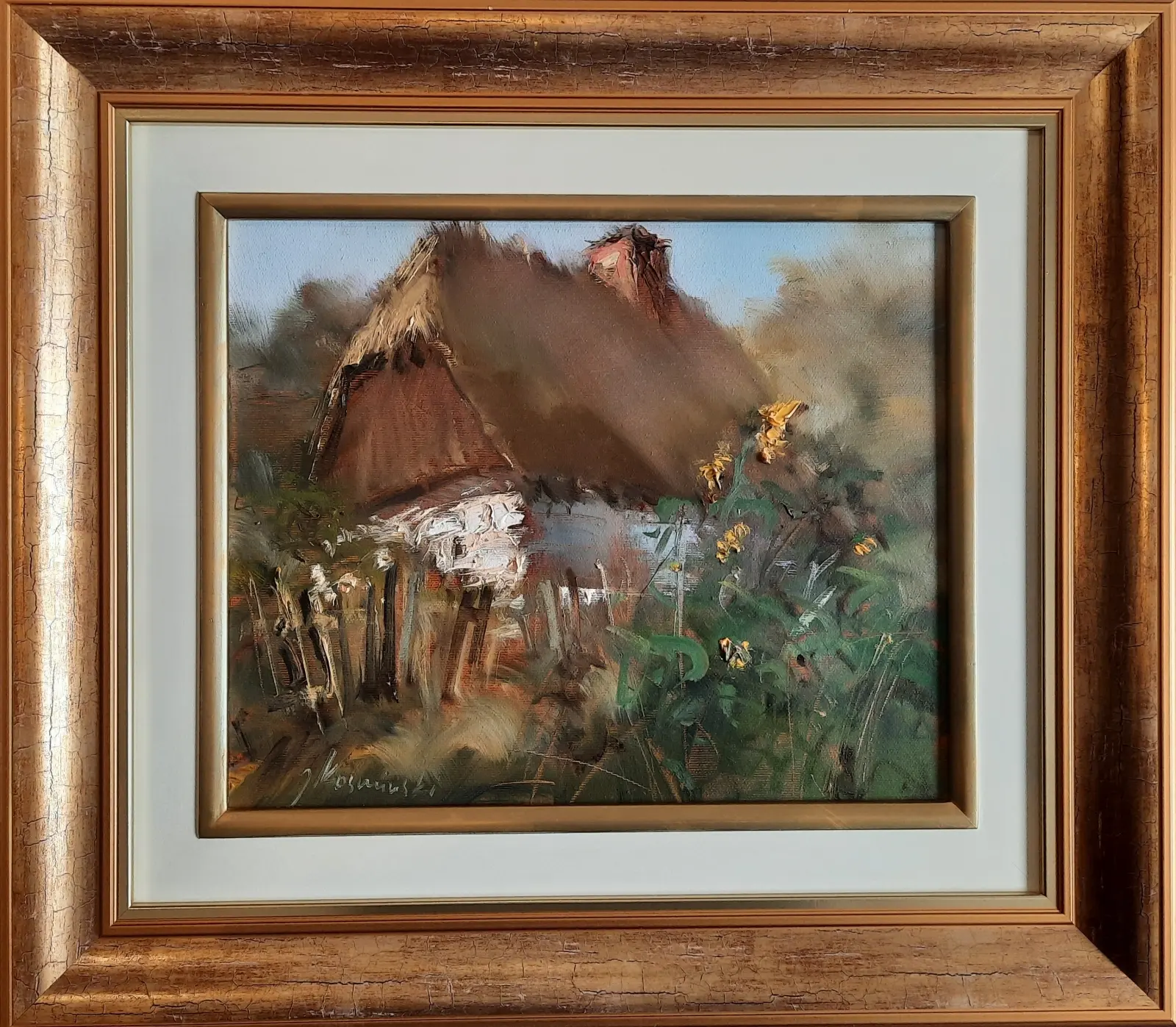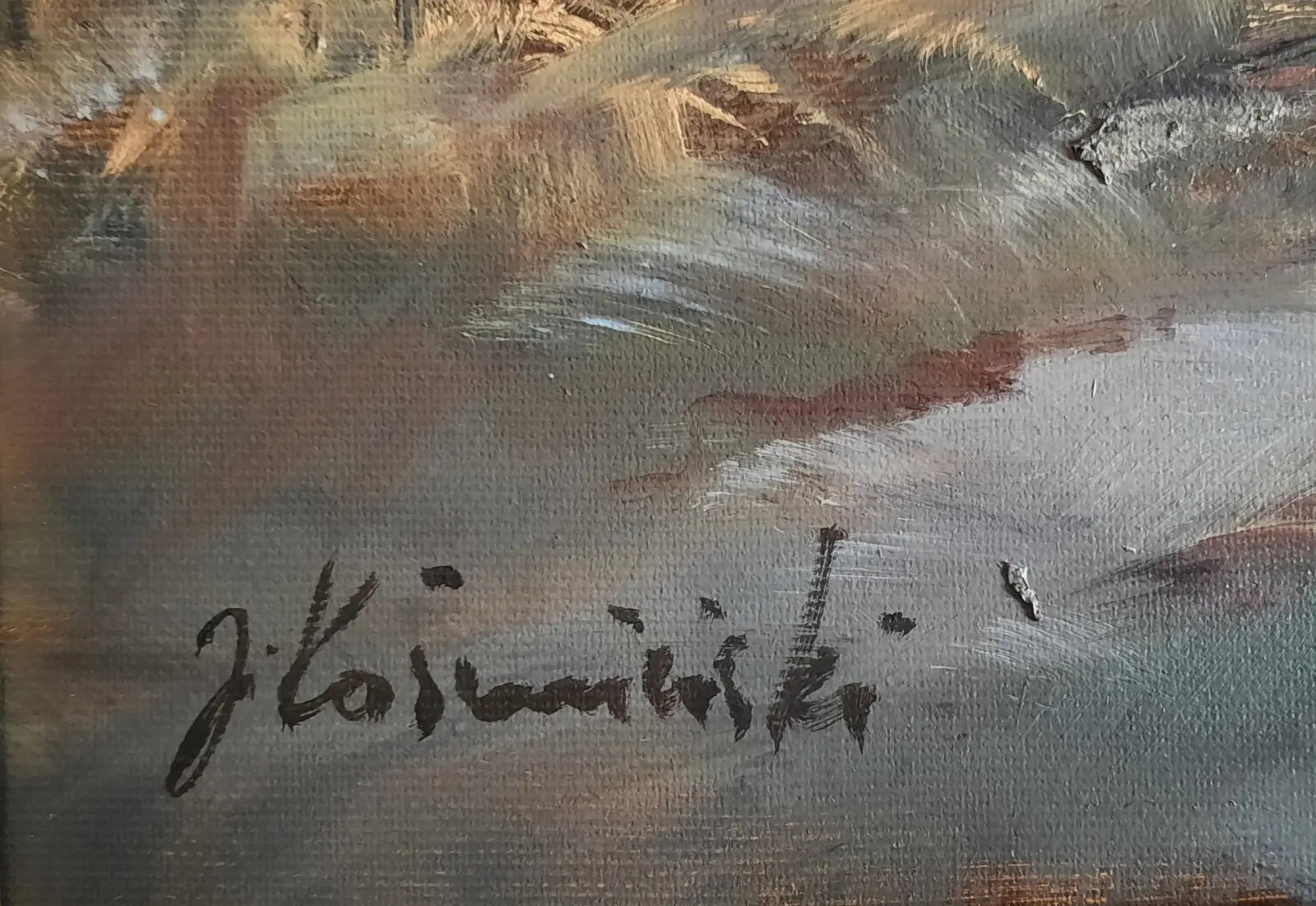 olej / płótno, sygn. l.d. "J. Kośmiński"; wymiary: 27 cm x 33 cm; oprawa listwowa, złocona, passe - partout