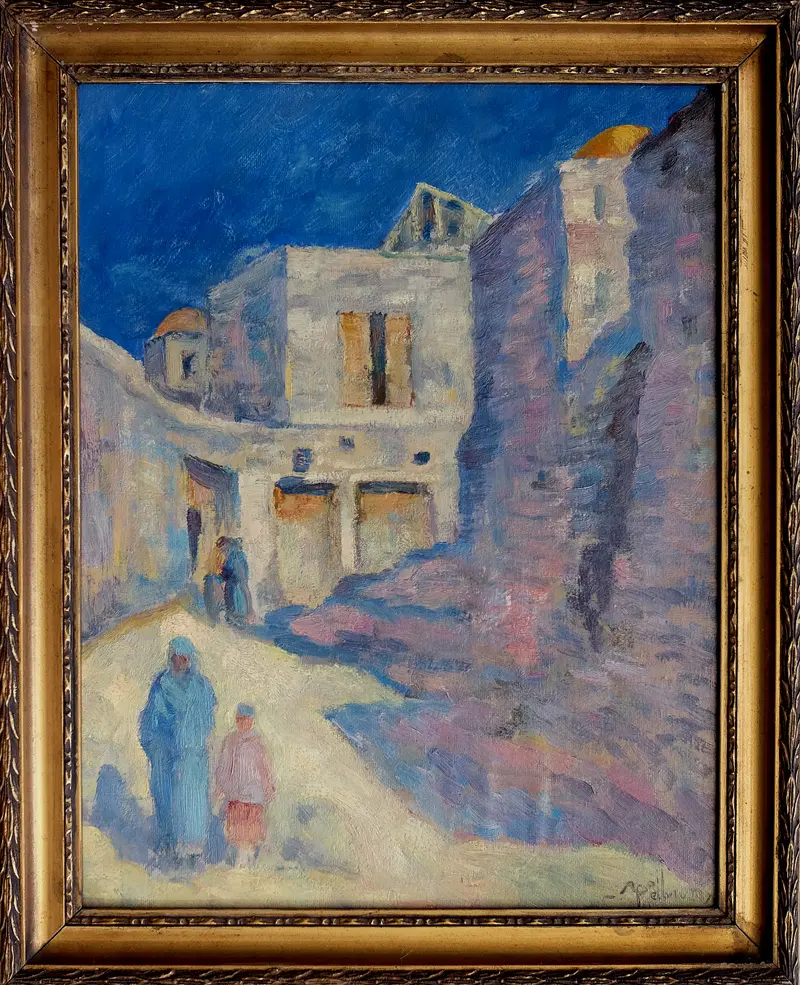 Na odwrocie owalny stempel Magazynu Przyborów Malarskich R. Aleksandrowicz, Kraków, ul. Basztowa 12, oraz napis ołówkiem: Maurycy Apfelbaum / Kair / 1930 r.