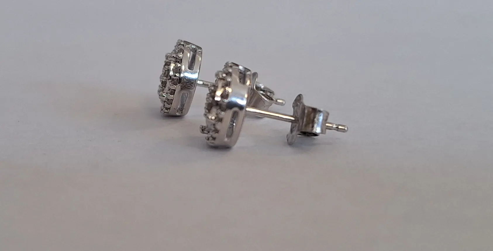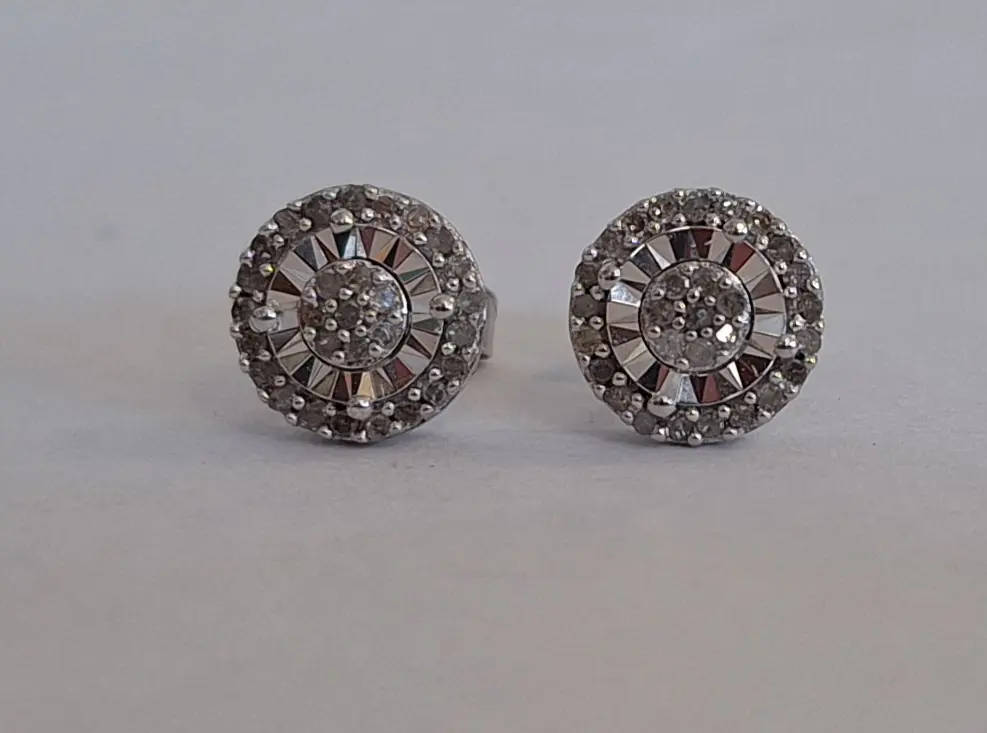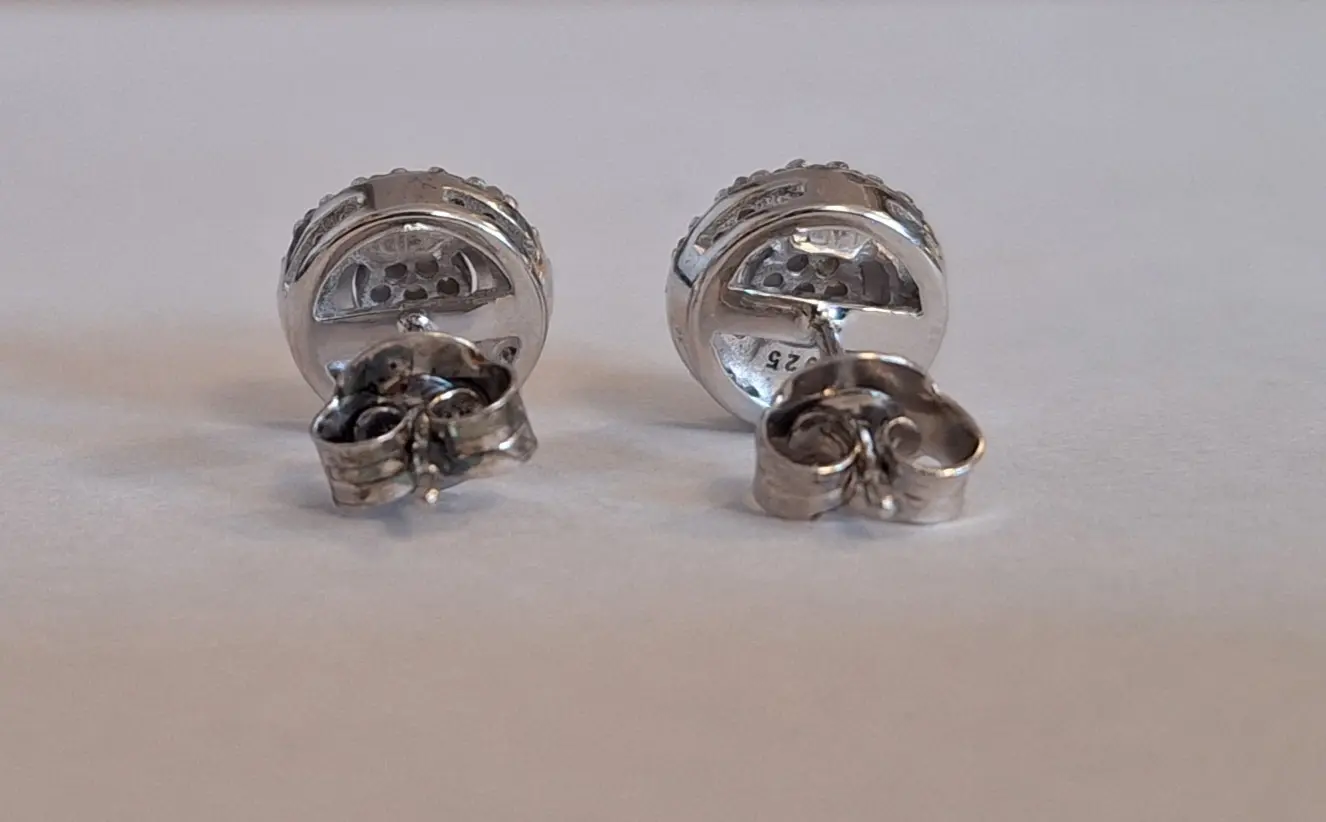 Srebro pr. 0,925 , waga 2,04 g. , 58 diamentów o masie około 0,15 ct.