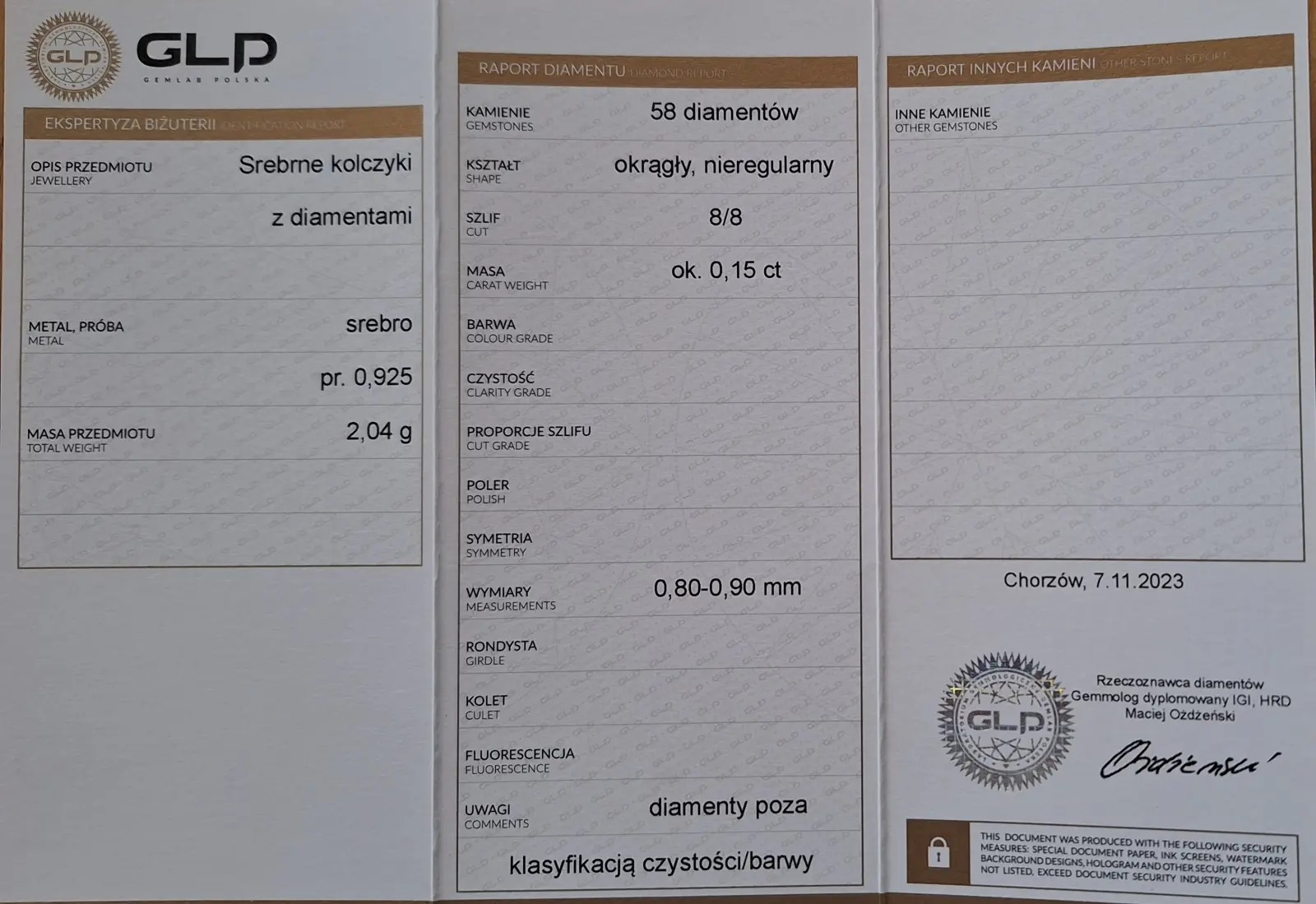Dołączony certyfikat rzeczoznawcy diamentów Macieja Ożdżeńskiego