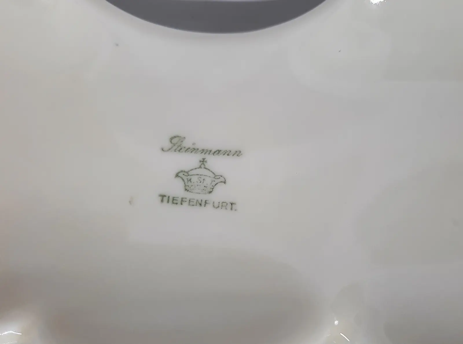 porcelana ecru; sygn. (zielona podszkliwna) 'Steinmann Tiefenfurt'; wymiary: wys. - 11 cm; szer. - 8,5 cm; dł. - 21 cm; Niemcy XX w.