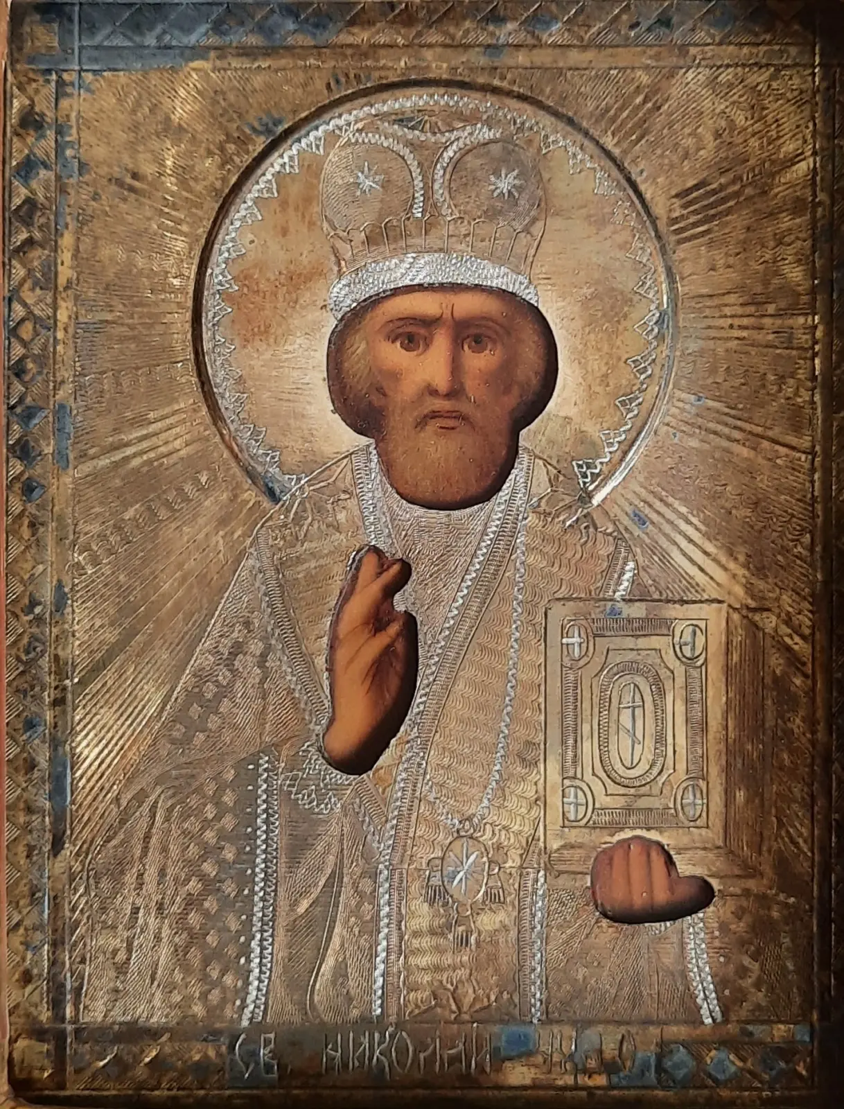 Ikona "Św. Mikołaj" w drewnianym kiocie