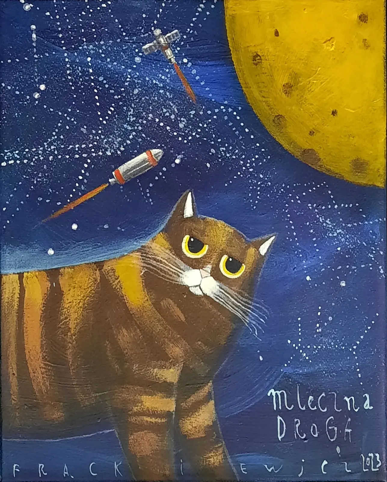 akryl / płótno, wymiary: 30 x 24 cm, sygn. "Frąckiewicz 2023 Mleczna Droga", opisany autorsko na odwrocie: 'Jacek Frąckiewicz "Mleczna droga" 30 x 24, akryl 2023 4/XII, 2023", oprawa listwowa