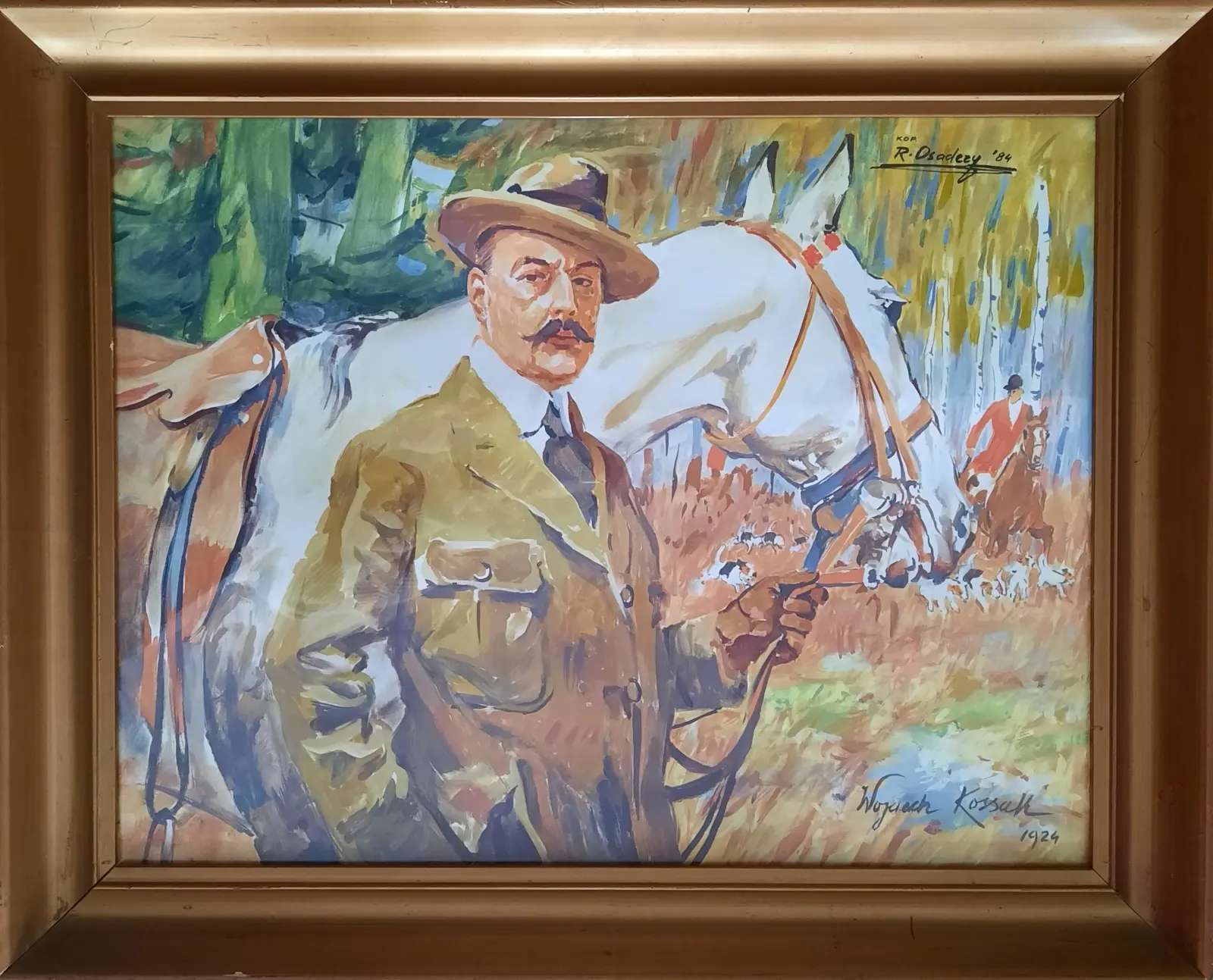"Autoportret z koniem na polowaniu" wg Wojciecha Kossaka, kopiował Ryszard Osadczy