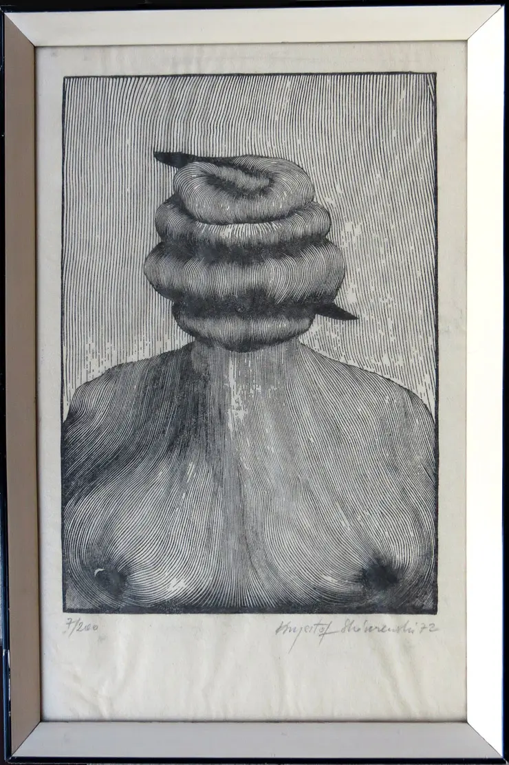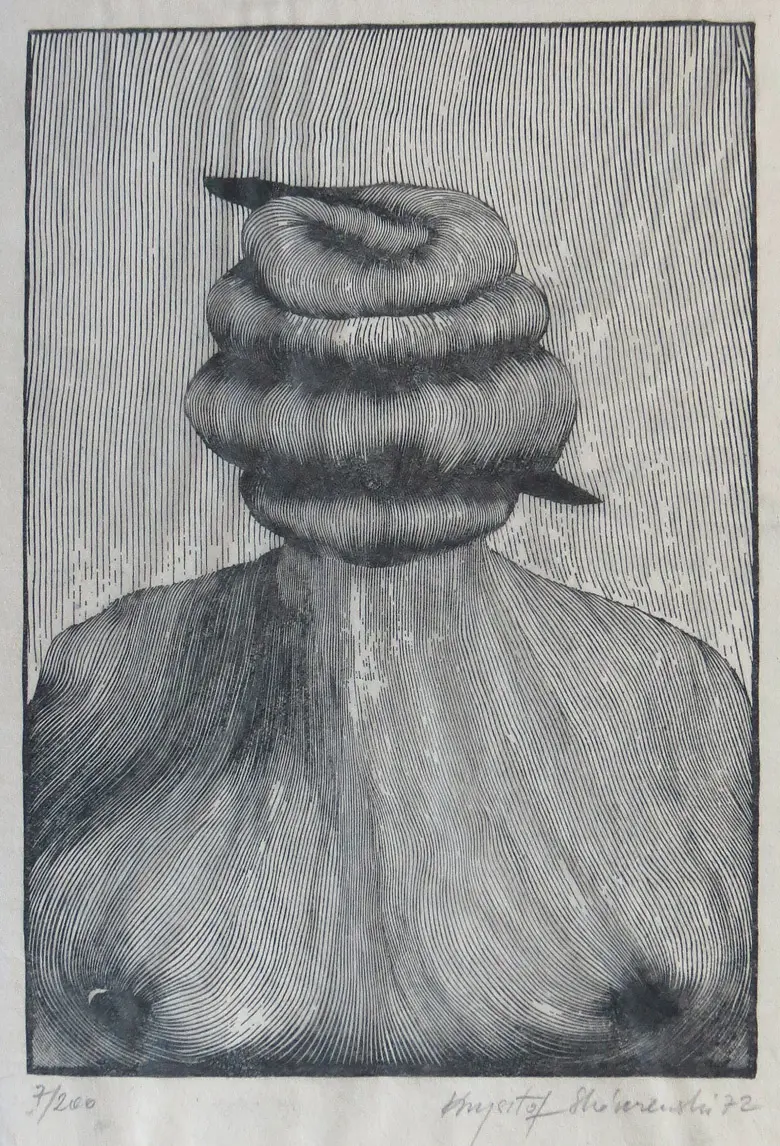 Linoryt „Kobieta i wąż” był prezentowany na I Wystawie Młodych, Kraków 1972, podczas której przyznano artyście I nagrodę. We wstepie do katalogu wystawy Helena Blum tak pisze o młodym grafiku: „Artysta operuje zespołem linii ułożonych równolegle. W tej strukturze nie ma jednak schematyczności i oschłości, linie biegną niekiedy łagodnie, poddane falującemu rytmowi. Skórczewski udziwnia jednak przedstawienie motywu, którym jest człowiek. „Kobieta i wąż”stają się tajemniczą kompozycją, niepozbawioną tragizmu. Ujęcie tej postaci jest surrealistyczne i prowadzi do wspomnienia Arcimboldo. Jednak surrealizm dawnego mistrza składał się z elementów naturalistycznych, gdy Skórczeski – mimo określonego motywu – oddala się od nich, dematerializuje, dażąc ku abstrakcji”.