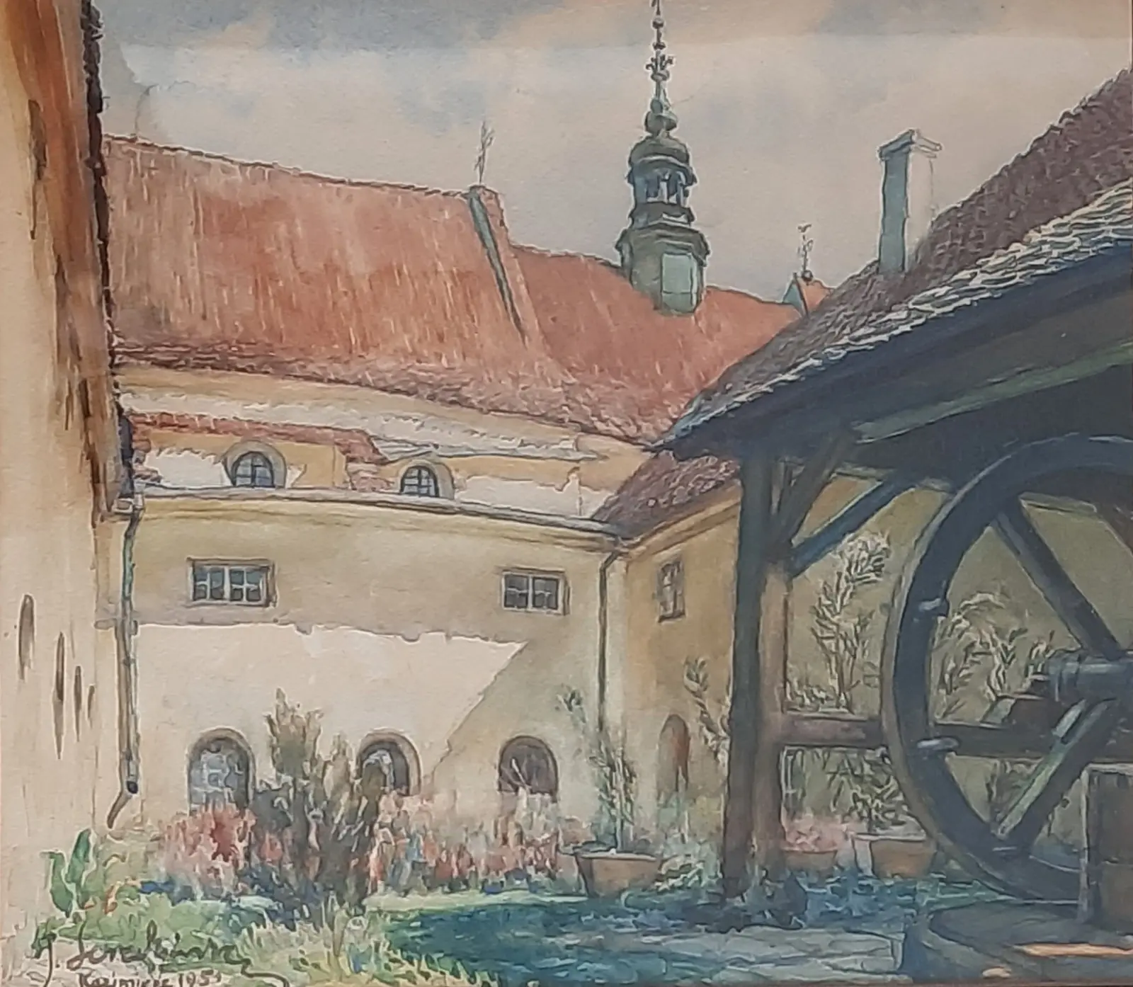 papier / akwarela, sygn. l.d. 'J. Seredyński Kazimierz 1951'; wymiary: 36,5 x 41,5 cm; oprawa listwowa, passe-partout, szklenie; 1951 r.