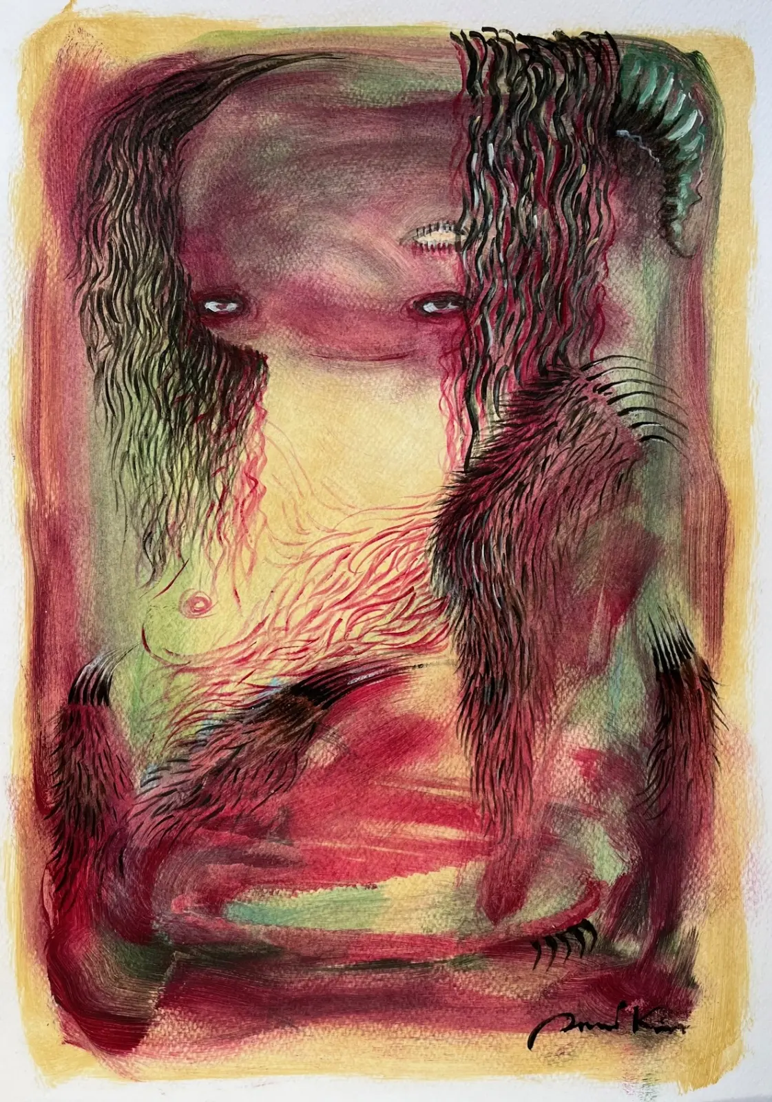 Obraz akryl, tusz na papierze, sygnowany p.d. Paweł Kin, format 40x30 cm, powstały w latach 2023-2024.