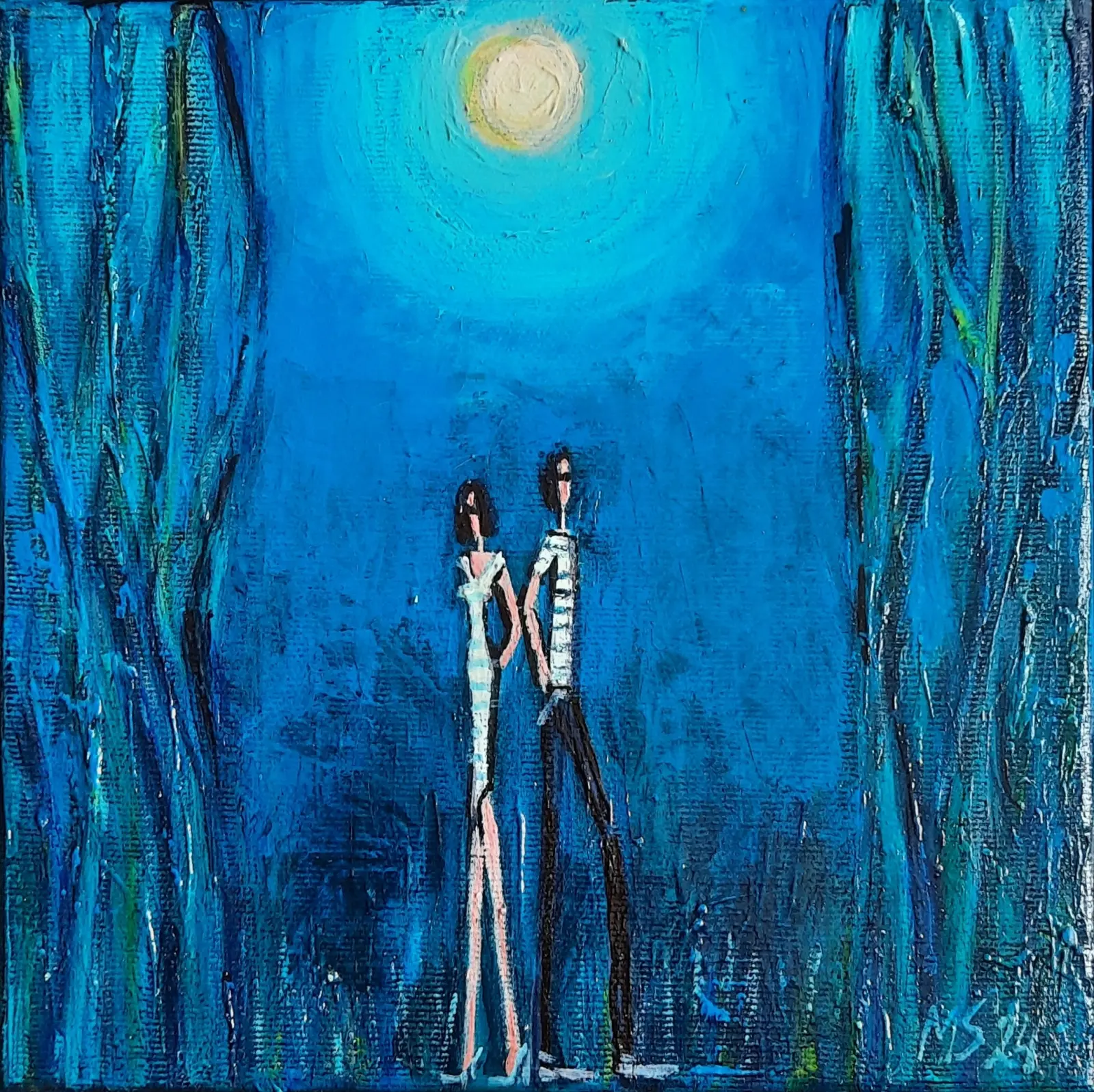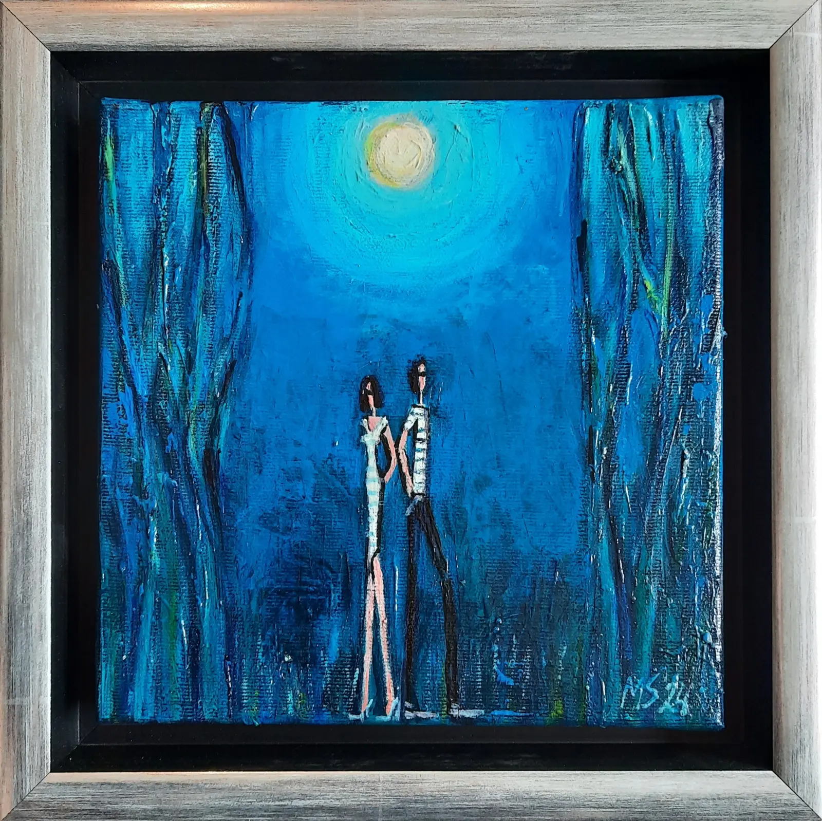 akryl/płótno; sygn. p.d. MS 24; wymiary 20 cm x 20 cm; opisany autorsko na odwrociu: 'Małgorzata Stępniak "Pełnia" 20x20 2024', oprawa listwowa