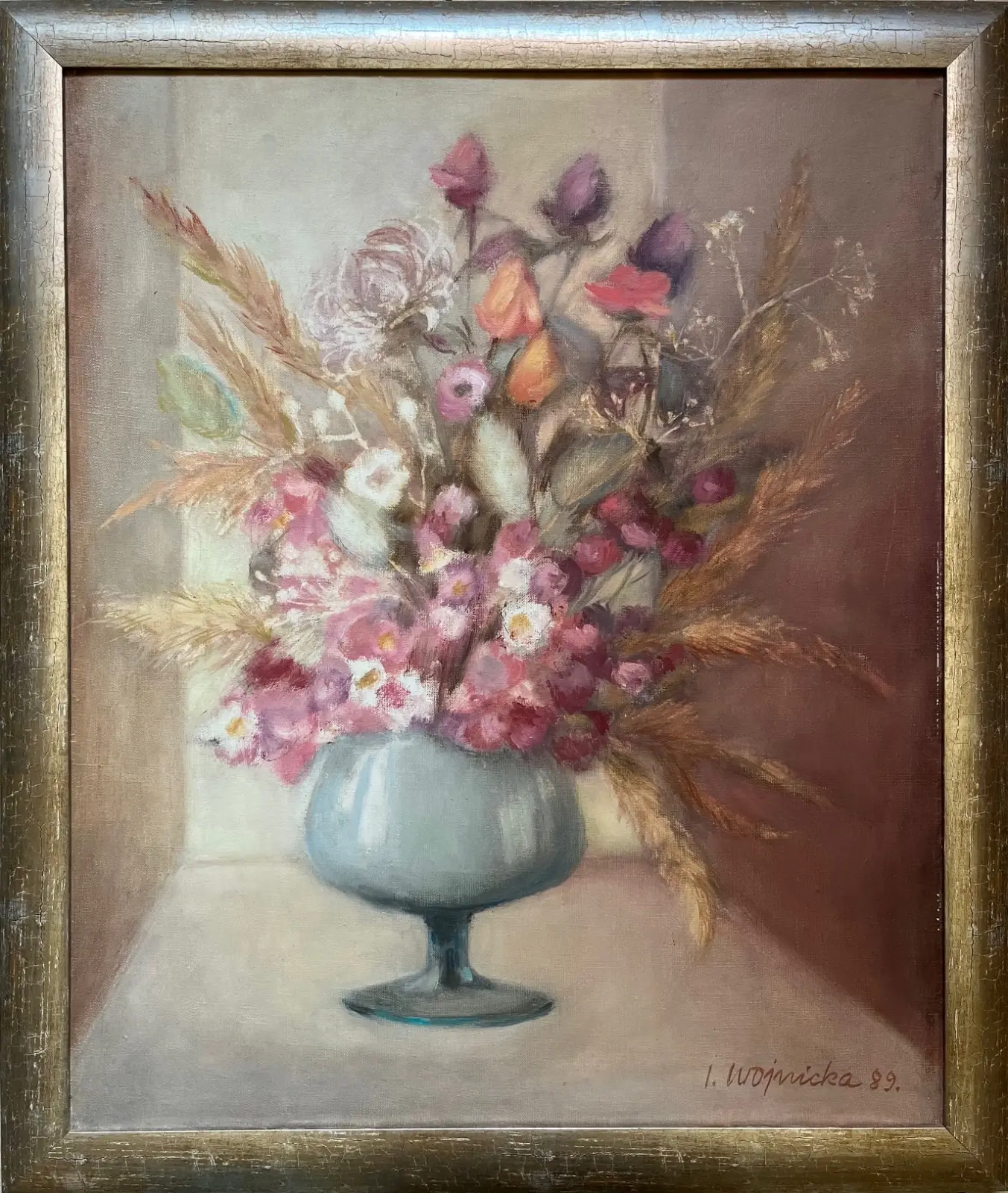 Obraz" Bukiet kwiatów" olej, płótno, format 60x50 cm, sygnowany p.d. I.Wojnicka.