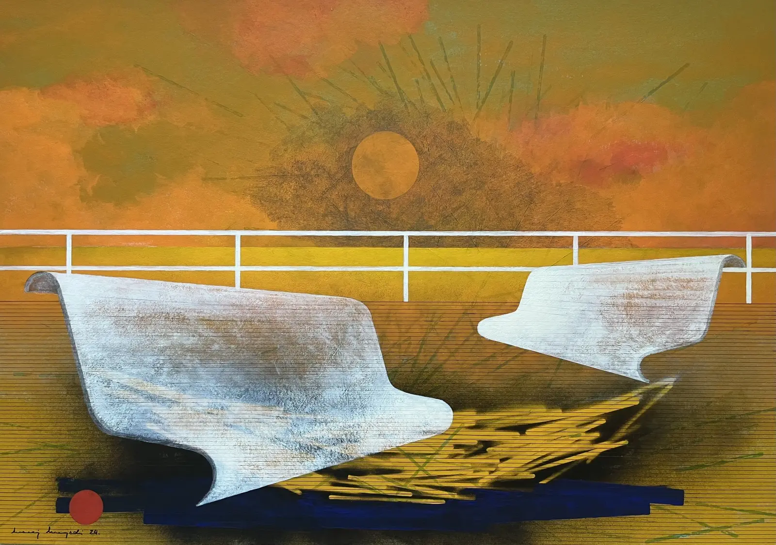 Obraz akryl , grafit na płycie, 70x100 cm 2024 rok, sygnowany l.d. Maciej Majewski 24.