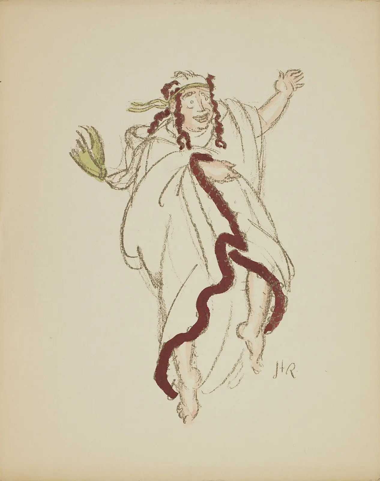 6 litografii barwnych z karykaturami aktorów w operetce Offenbacha Piękna Helena granej w Warszawie w 1921 r., 28 x 23,7 cm, karta tytułowa, teka rozerwana. 31/100, sygn. niebieską kredką na stronie tytułowej N 31 i ołówkiem: Rzecki, sygn. na kamieniu każda, z tyłu oprawy znak drukarni Główczewskiego w Warszawie.