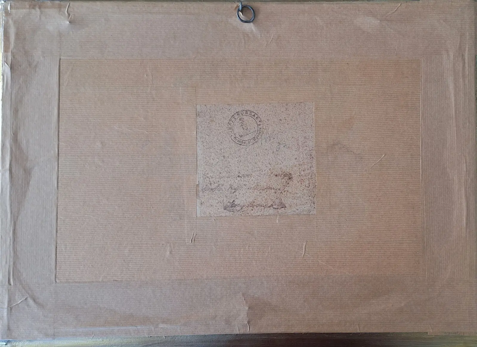 Na odwrocie dwie pieczęcie autorskie : okrągła z napisem " Jerzy Kossak Kraków plac Kossaka" , i prostokątna stwierdzająca autentyczność obrazu - faksymile odręcznego napisu " Stwierdzam autentyczność tego obrazu Jerzy Kossak" oraz pieczątka zakładu ramiarskiego Jan Żmija w Krakowie.
