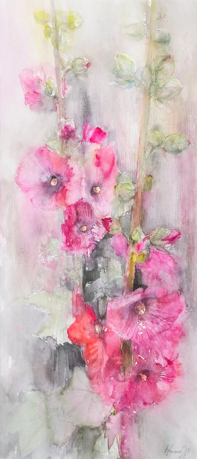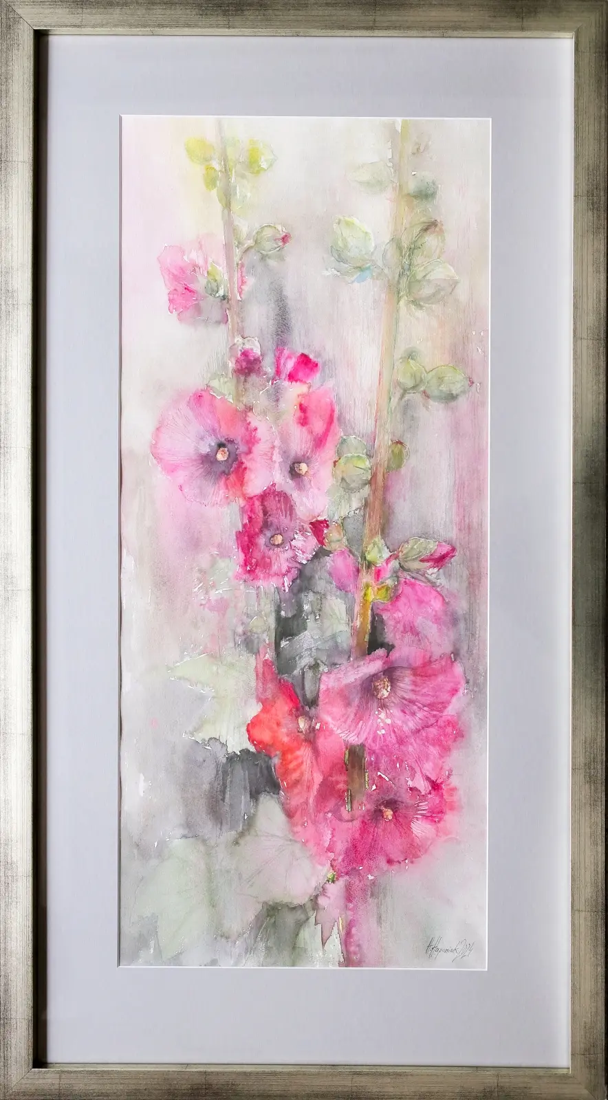 AKWARELA OPRAWIONA , WYM. 79 CM X 33,5 CM, WYM. Z OPRAWĄ : 102 CM X 55 CM , 2024 ROK.