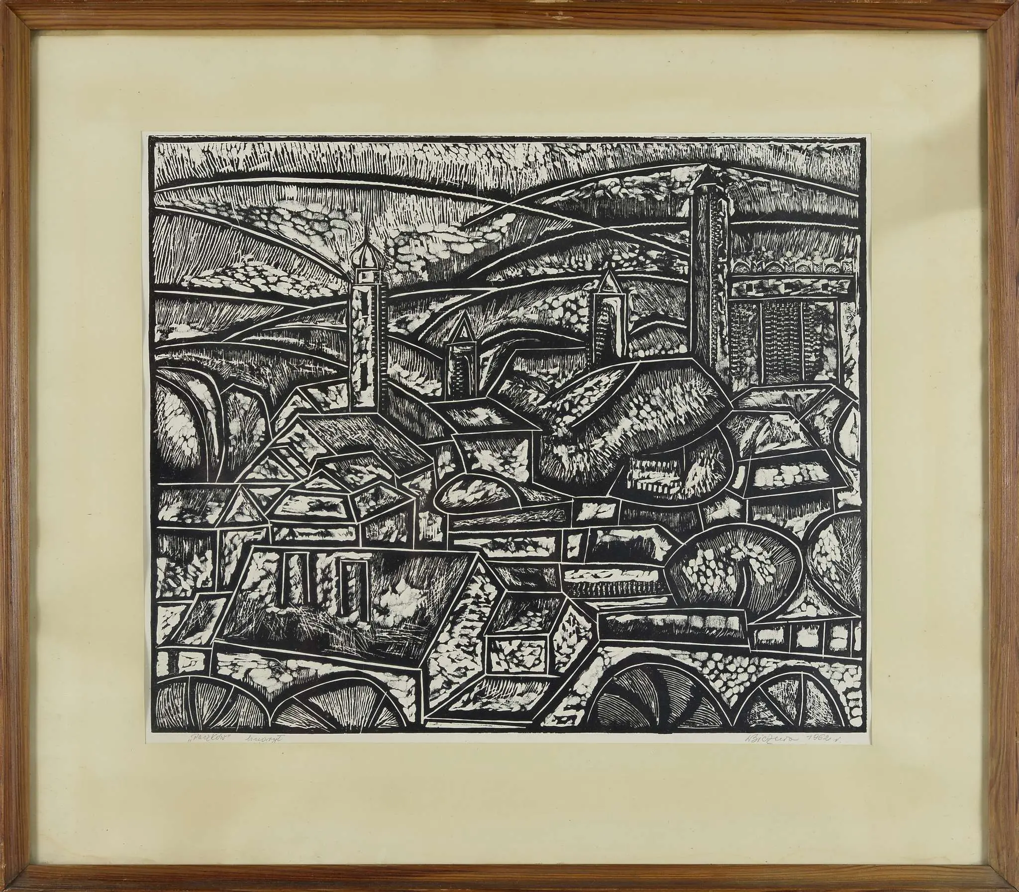 Sygn. ołówkiem d.: Paczków linoryt [nieczyt.] 962 r.
