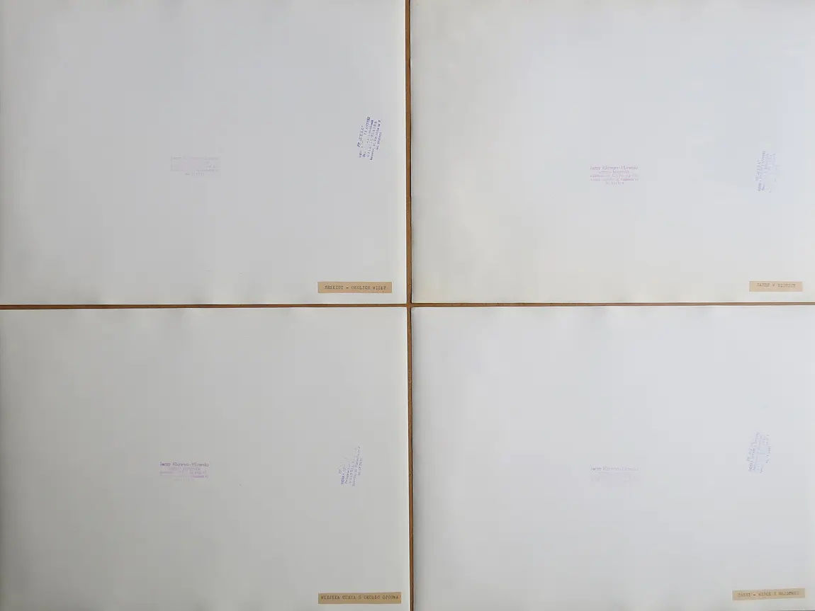 Wewnatrz teki nalepka (pismo maszynowe) z listą 24 prezentowanych fotografii.