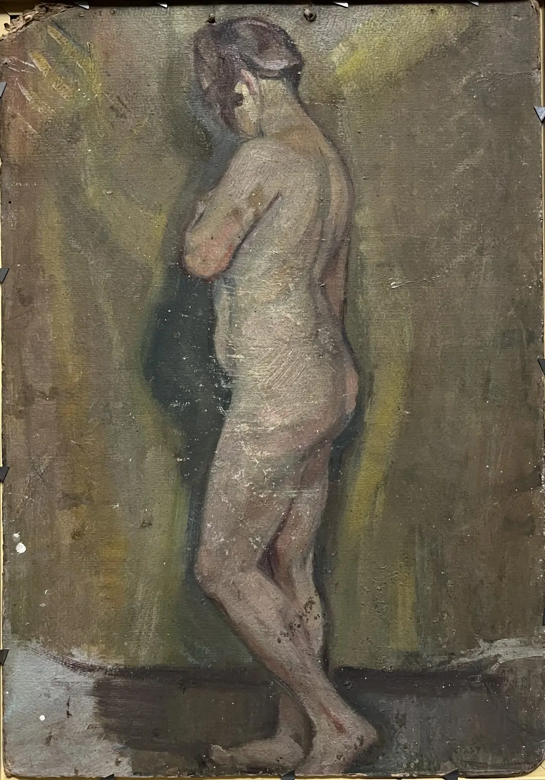 Obraz „ Kwiaty w wazonie", olej, tektura, wymiary 48 x 34 cm, sygnowany p.d. Z.Kałuski 1925. na odwrocie widoczny ukończony szkic olejny "Studium aktu" , widoczne przerysowania oraz dwa otwory u gór,y obrazu po zawieszce.