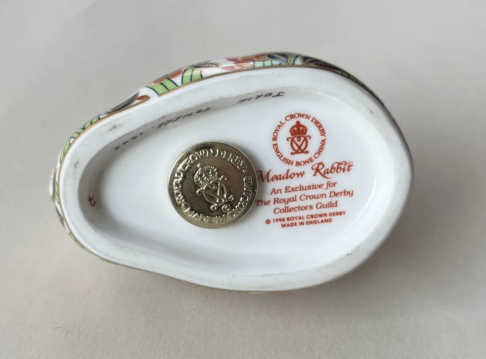 Porcelanowy kolekcjonerski przycisk do papieru wyprodukany w limitowanej serii przez Royal Crown Derby, dla klubu kolekcjonerskiego (rok 1999). Projektantem formy był Robert Jefferson, za malowanie tego konkretnego egzemplarza odpowiadała Julie Towell (sygnatura na spodzie)