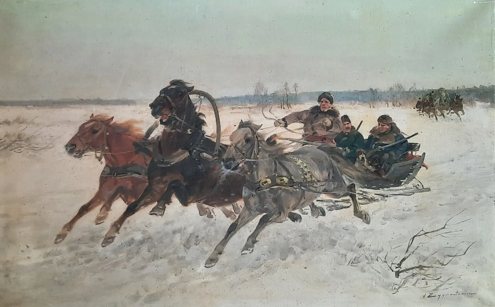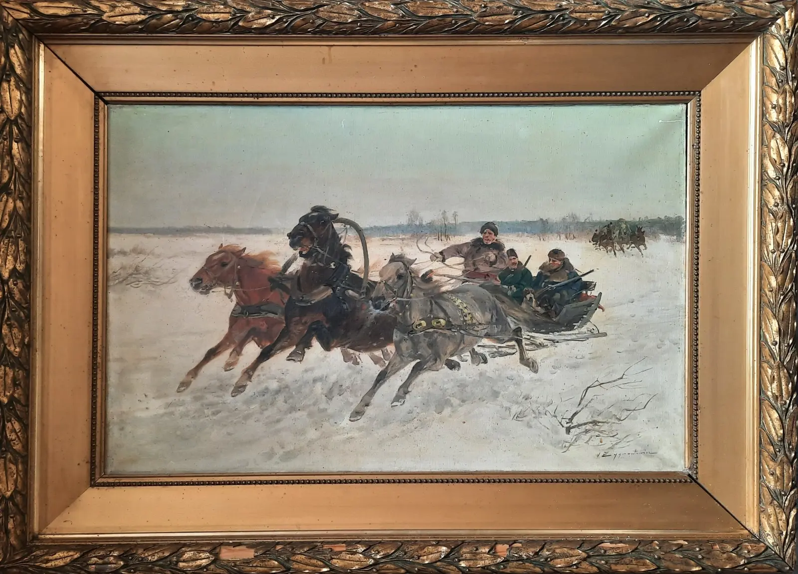 (Czesław WASILEWSKI) Był popularnym w okresie międzywojennym malarzem-samoukiem. Tworzył obrazy o tematyce rodzajowej inspirowane malarstwem Brandta, Chełmońskiego i Kossaków. Malował zaprzęgi, kuligi, polowania, ułanów.