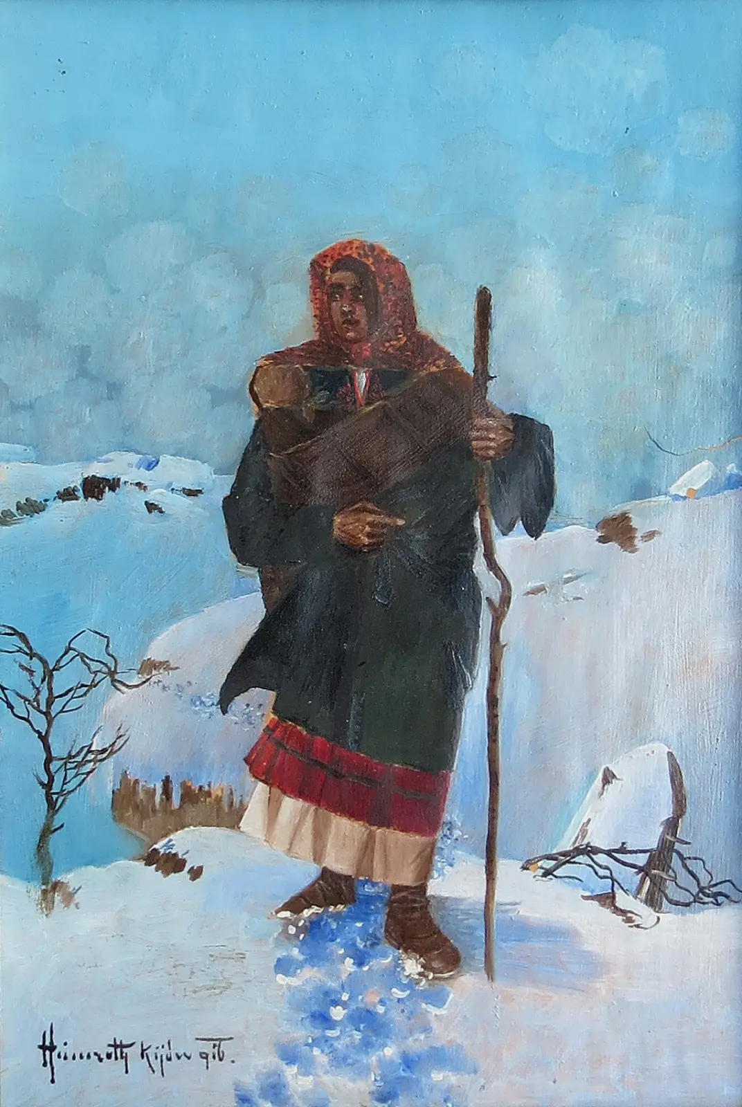 Pozycja: "Młoda kobieta na tle zimowego pejzażu", 1916