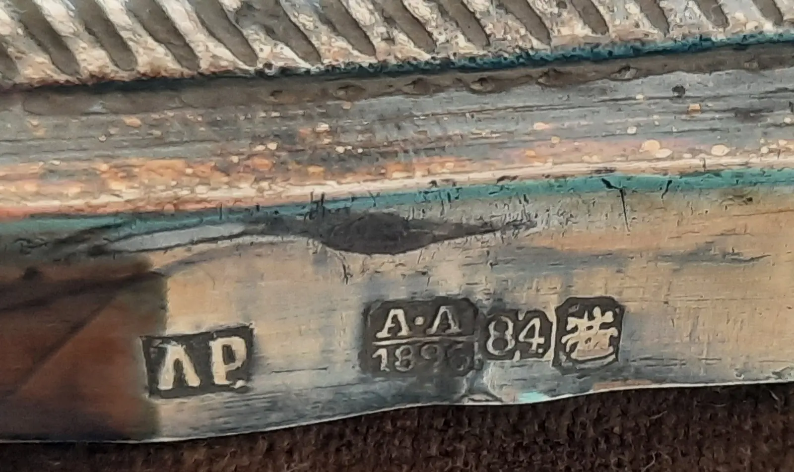 deska/tempera/srebrna ryza/tkanina; srebro pr. 84, probierz (pisany cyrylicą): 'AA' - Anatolij Apollonowicz Arcybaszew (czynny w Moskwie w latach 1888-1898); znak złotnika (pisany cyrylicą): 'AP'; wymiary: 27 cm x 23 cm; stan zachowania - ubytki ryzy, ubytki i przetarcia malatur; Rosja/Moskwa 1896 r.