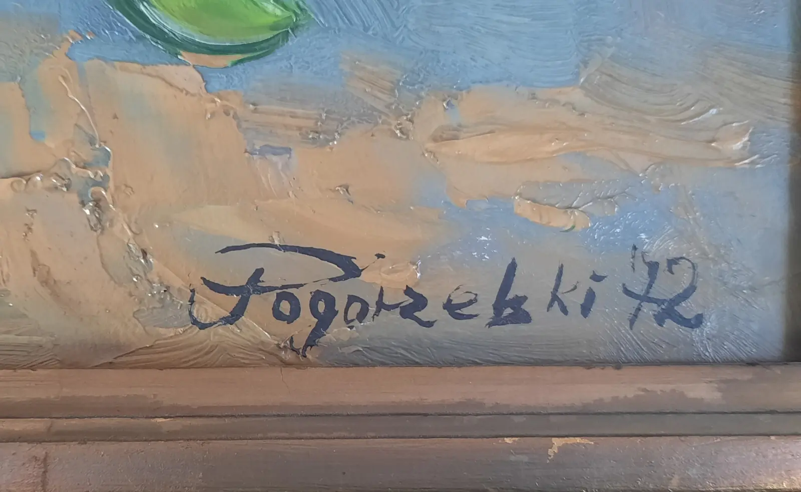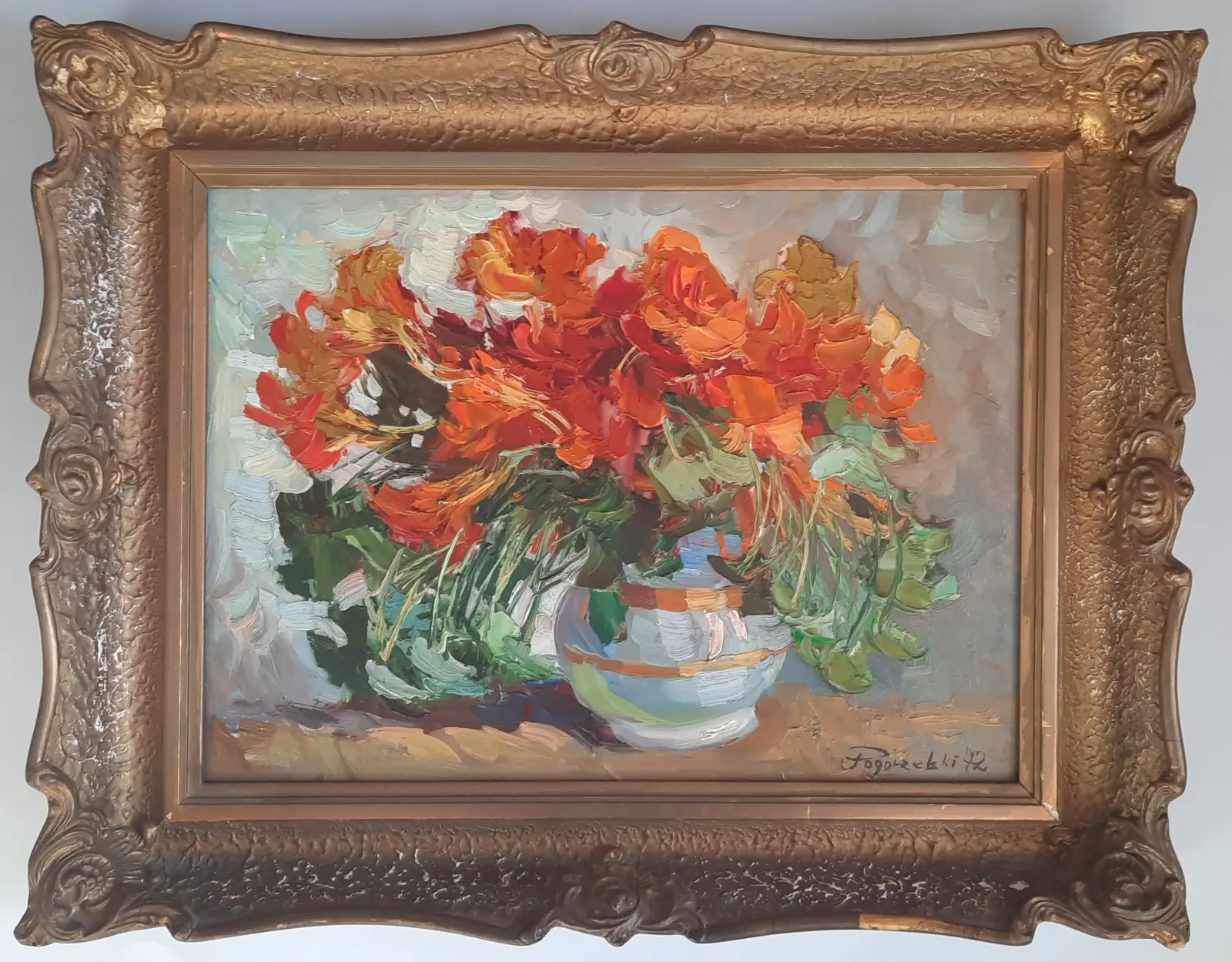 olej / płyta, wym. 35 cm x 47 cm, sygn. p.d. Pogorzelski 72; oprawa drewniana złocona, aplikacje gipsowe