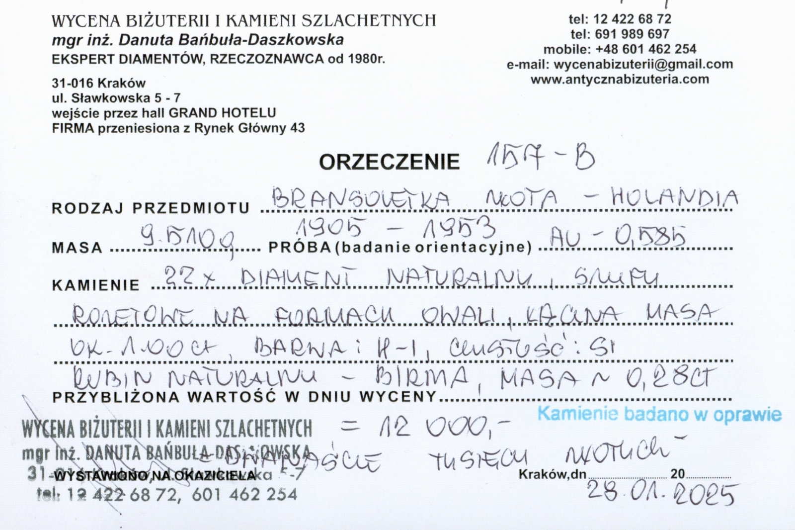 Pozycja: Bransoletka złota z diamentami i rubinem