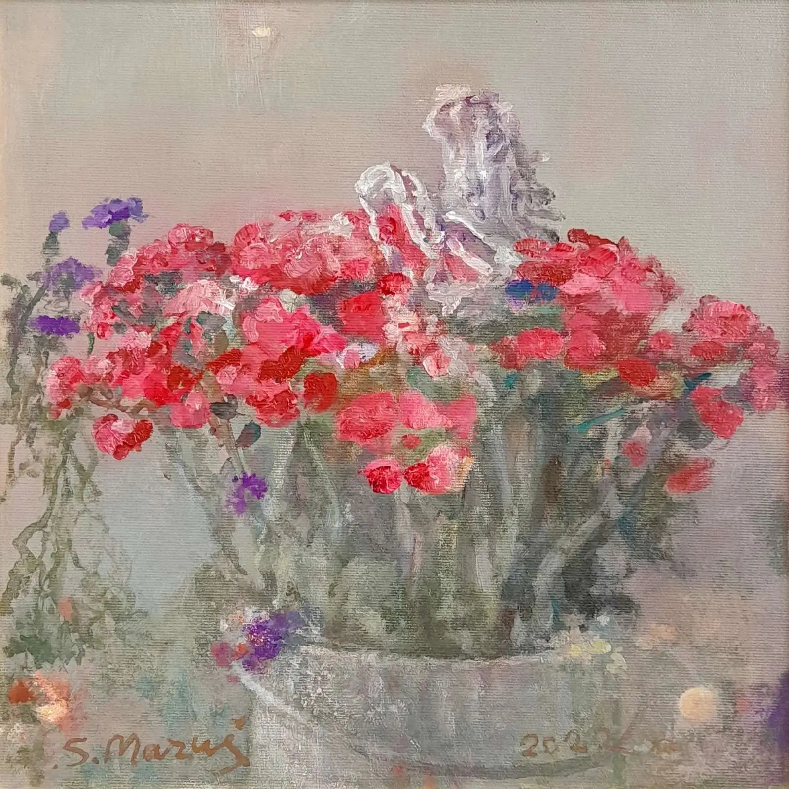 Olej, płótno na płycie, wym. 33 x 33 cm, sygn. l.d., dat. 2022