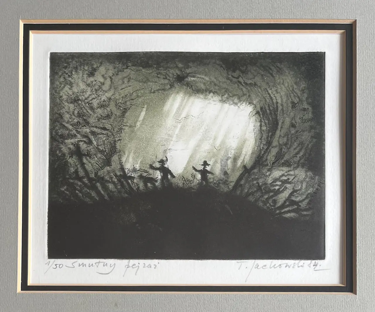 Grafika mezzotinta , 1/50 , sygnowana p.d. T. Jackowski 84. format 12x16 cm.