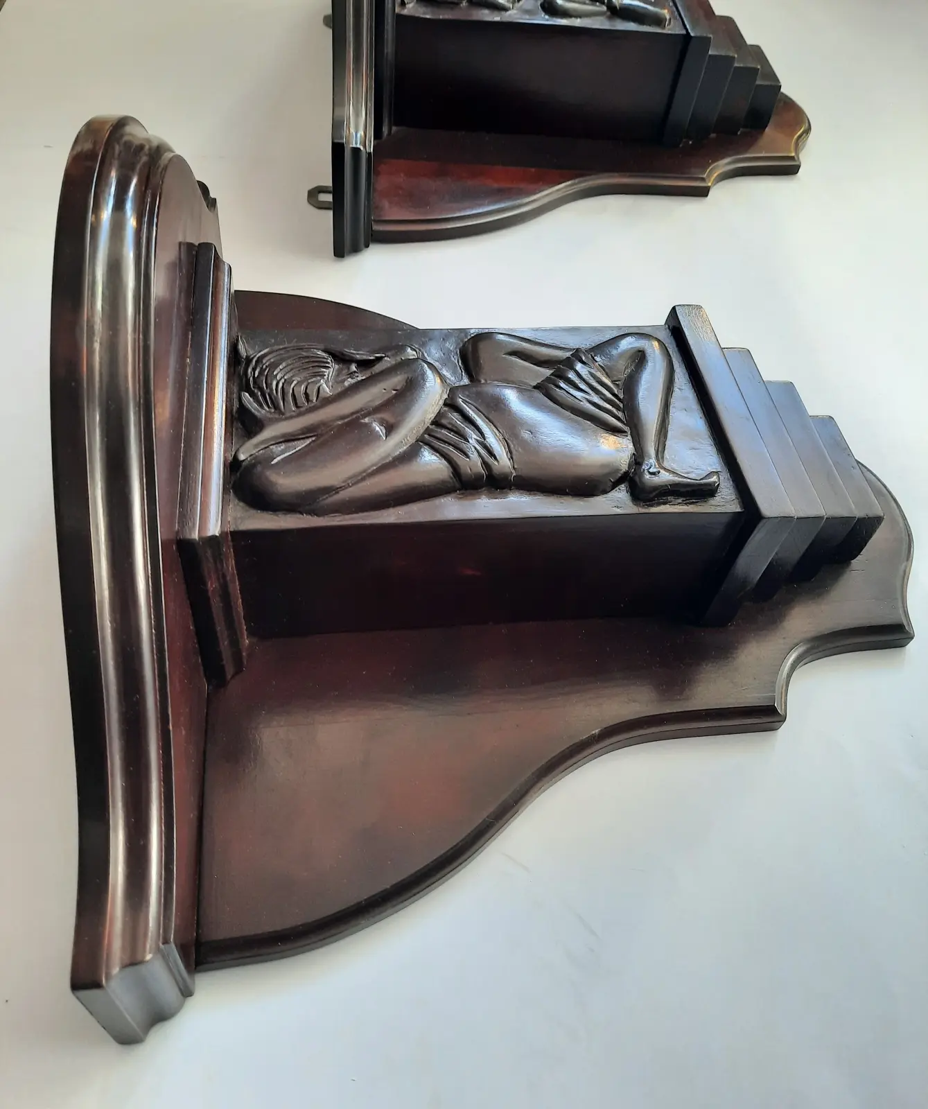 Para konsolek w stylu secesyjnym z rzeźbionym dekorem