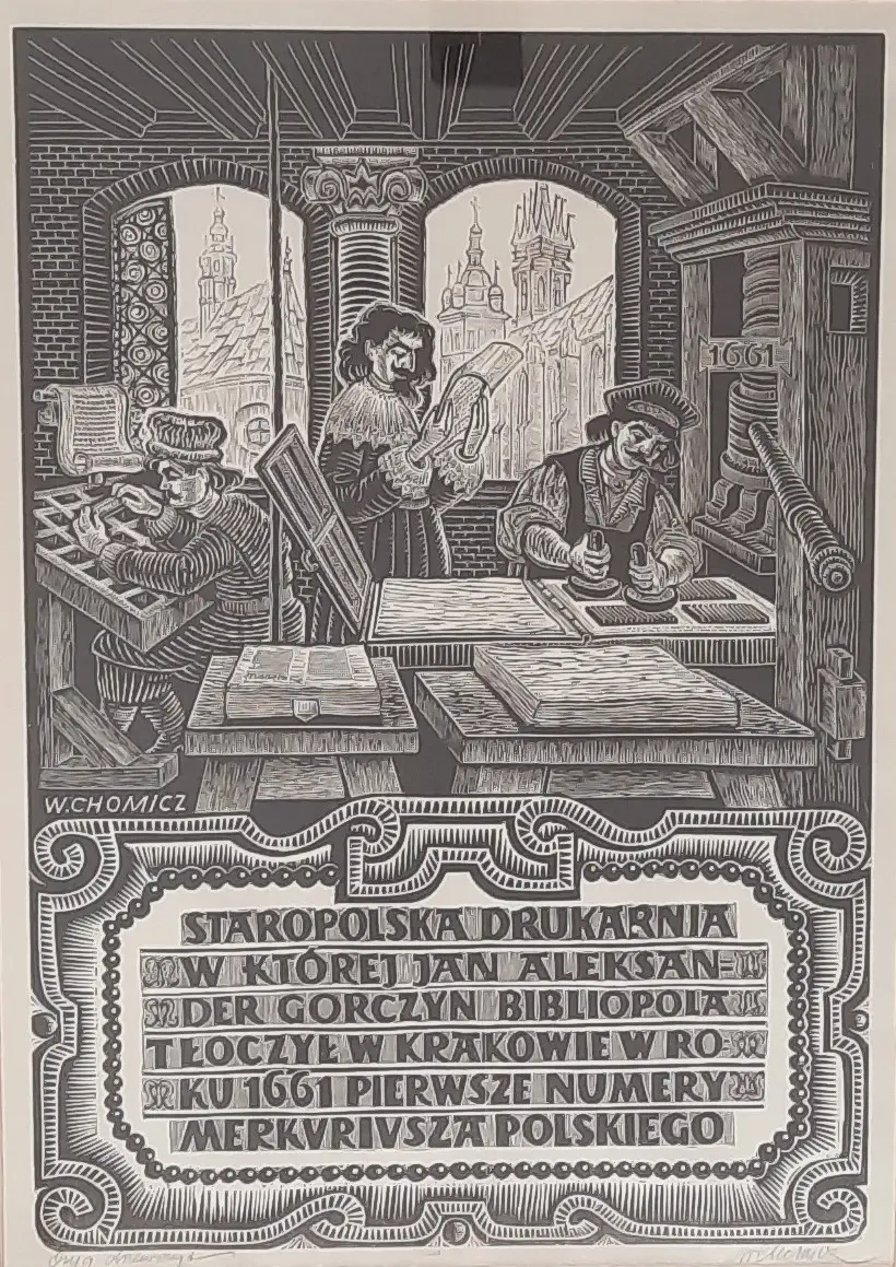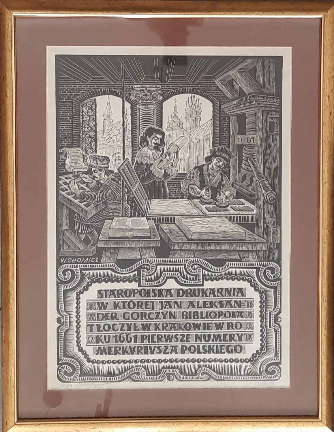 papier / drzeworyt, wym. 57 cm x 37 cm, sygn. ołówkiem p.d. W. Chomicz oraz opisany ołówkiem l.d. oryg. drzeworyt; oprawa listwowa, passe-partout, szklenie; Polska lata 70.- 80. XX w.