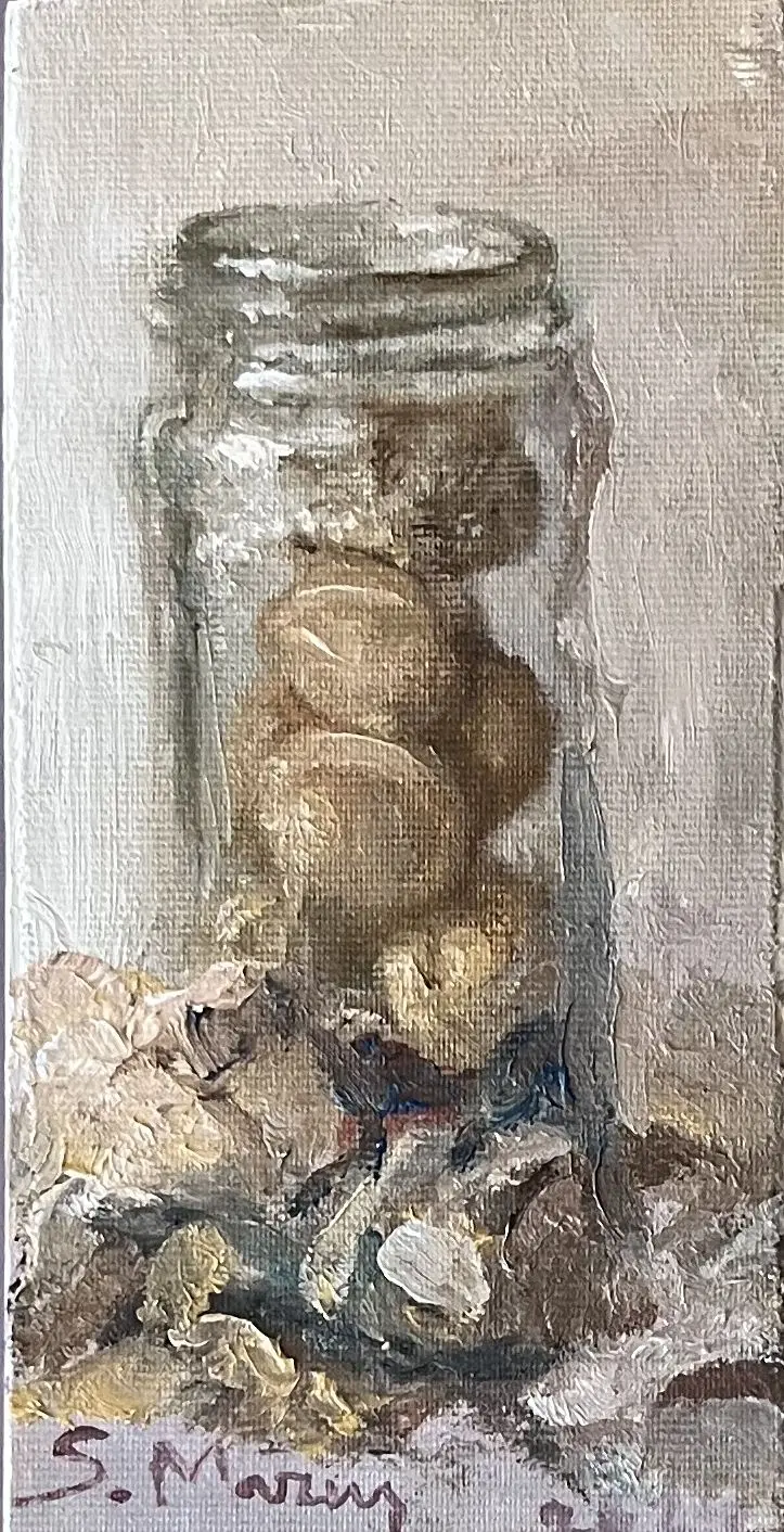 Olej, płótno na płycie, wym. 20 x 10 cm, sygn. l.d, dat. 2024