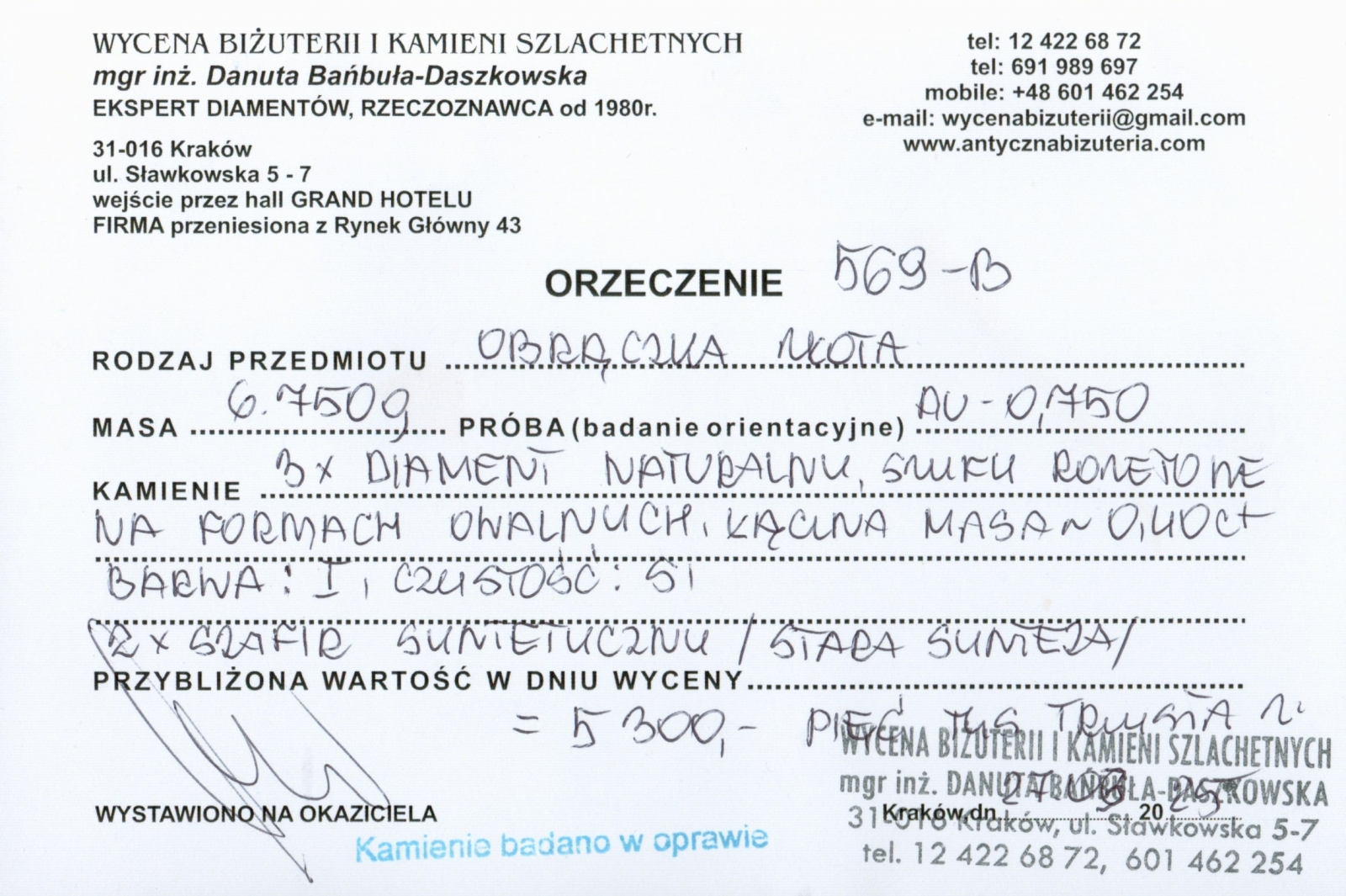 Pozycja: Obrączka złota z rozetami diamentowymi