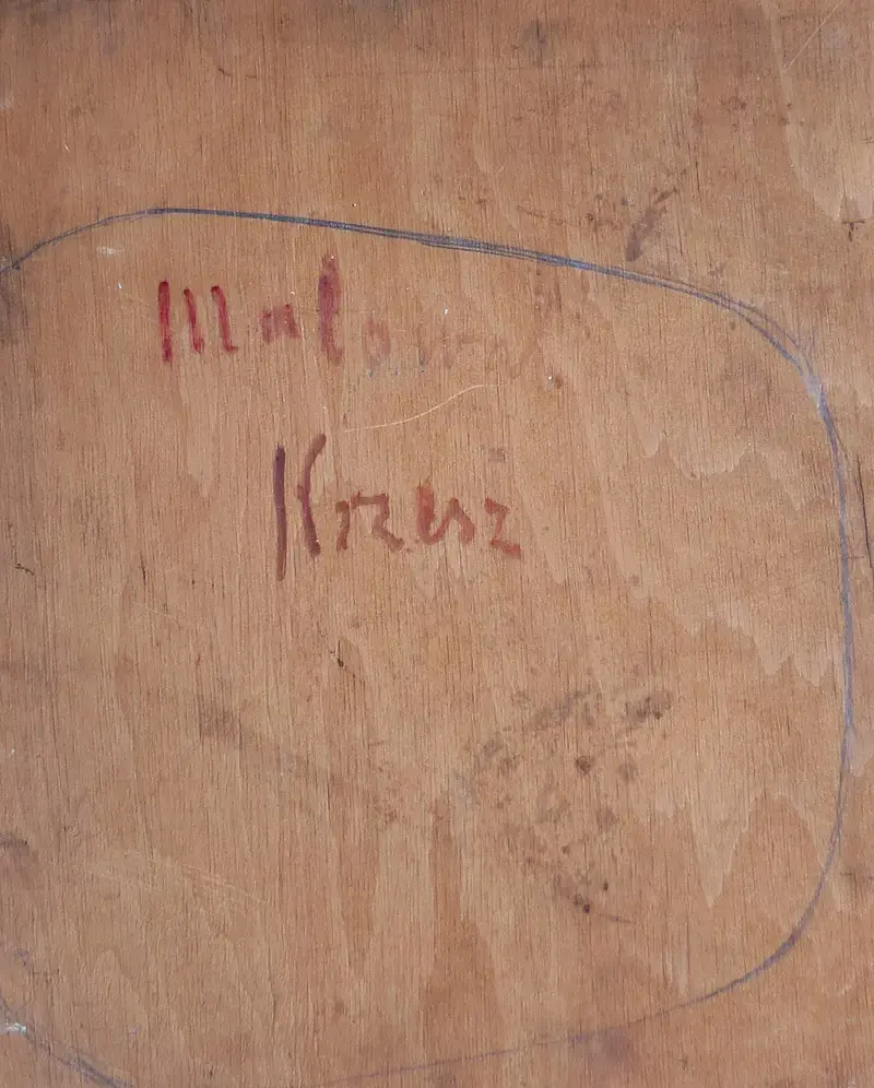 Przypisywany. Olej, płótno naklejone na sklejkę, 37 x 30 cm, niesygnowany. Na odwrocie, na sklejce, napis czerwona farbą: Malował / Krzesz. Obraz po konserwacji.