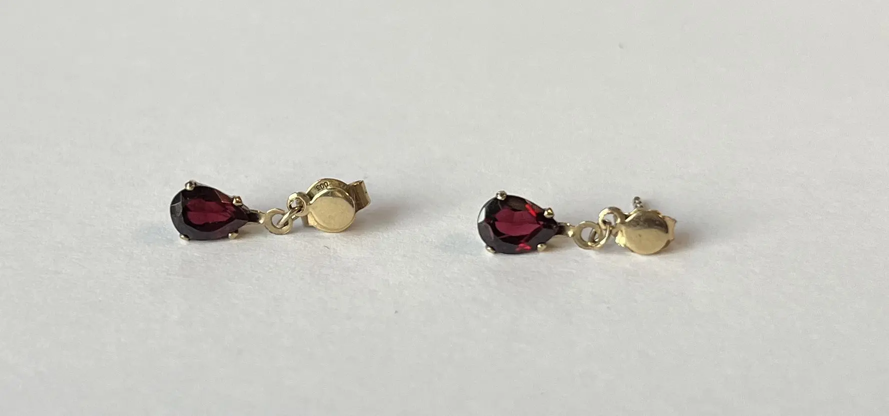 Kolczyki złoto pr. 333, granaty, w. 1,3 g.
