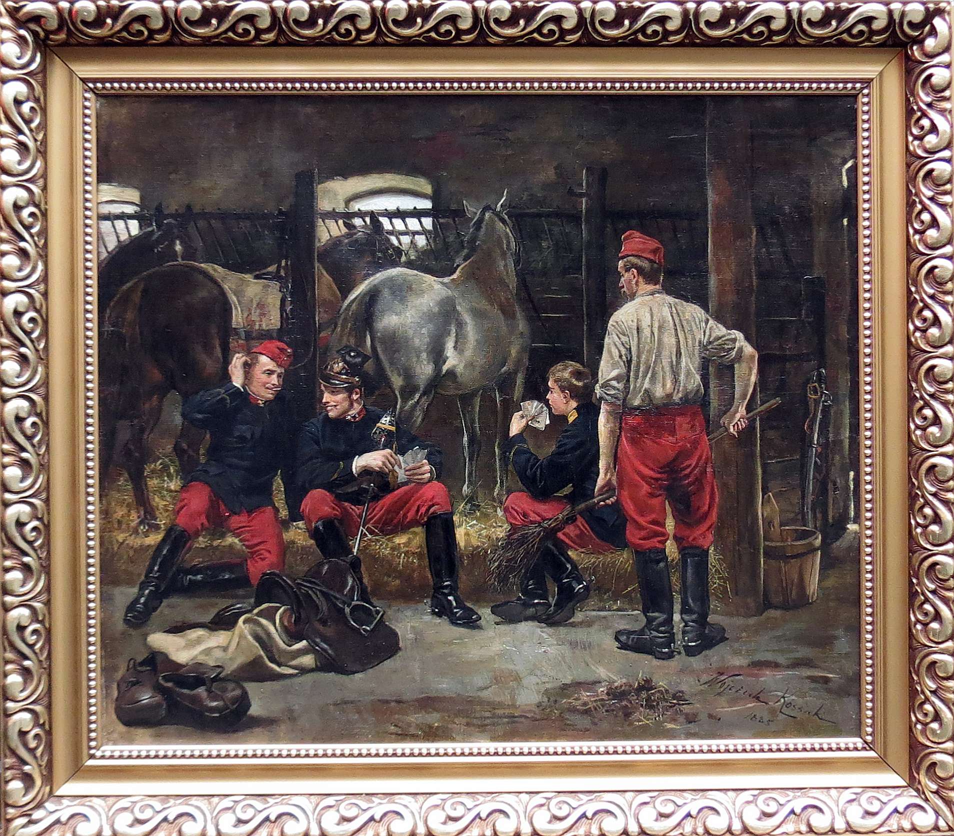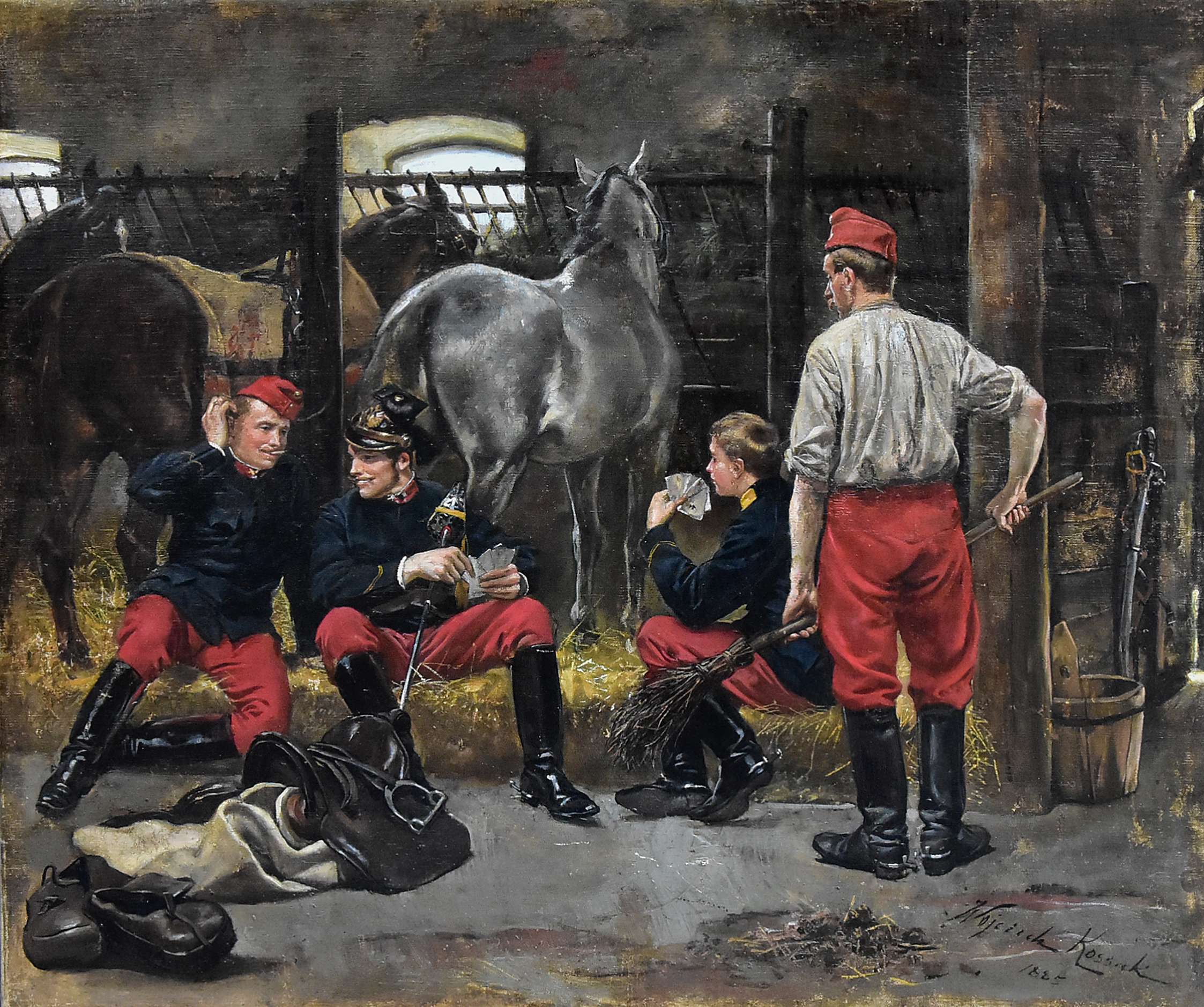 olej, płótno, wym.: 64 x 74,5 cm, sygn. p.d.: Wojciech Kossak / 1885 Obraz po konserwacji, wymienione krosna. Obraz z kolekcji księdza infułata Stanisława Świerczyńskiego (1931-2023), wieloletniego duszpasterza polonijnego i rektora Polskiej Misji Katolickiej w Anglii i Walii, naczelnego kapelana ZHP poza krajem. Obraz został ofiarowany ks. Świerczyńskiemu z okazji jego 30-lecia kapłaństwa. Obecnie obraz znajduje się w zbiorach rodziny księdza infułata.